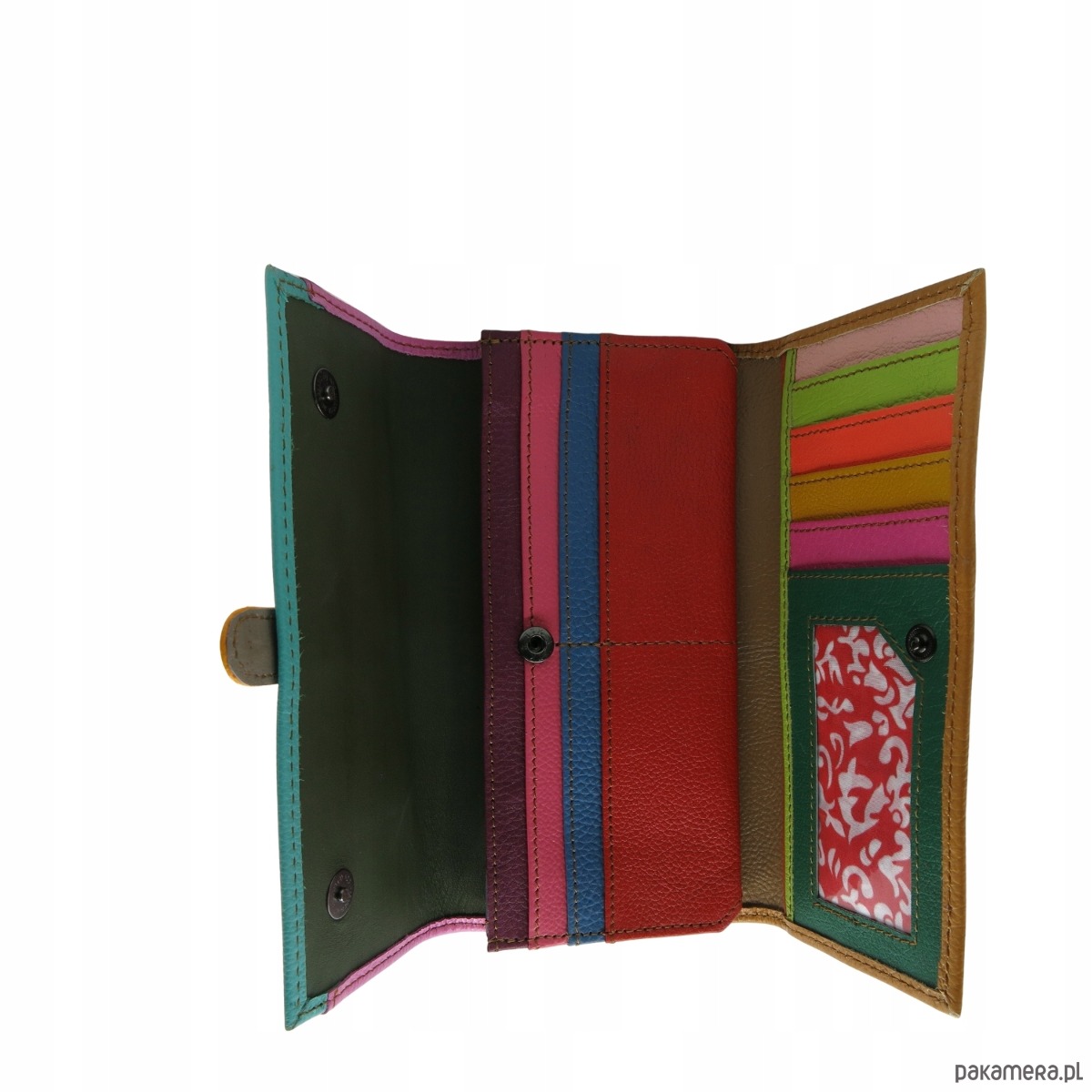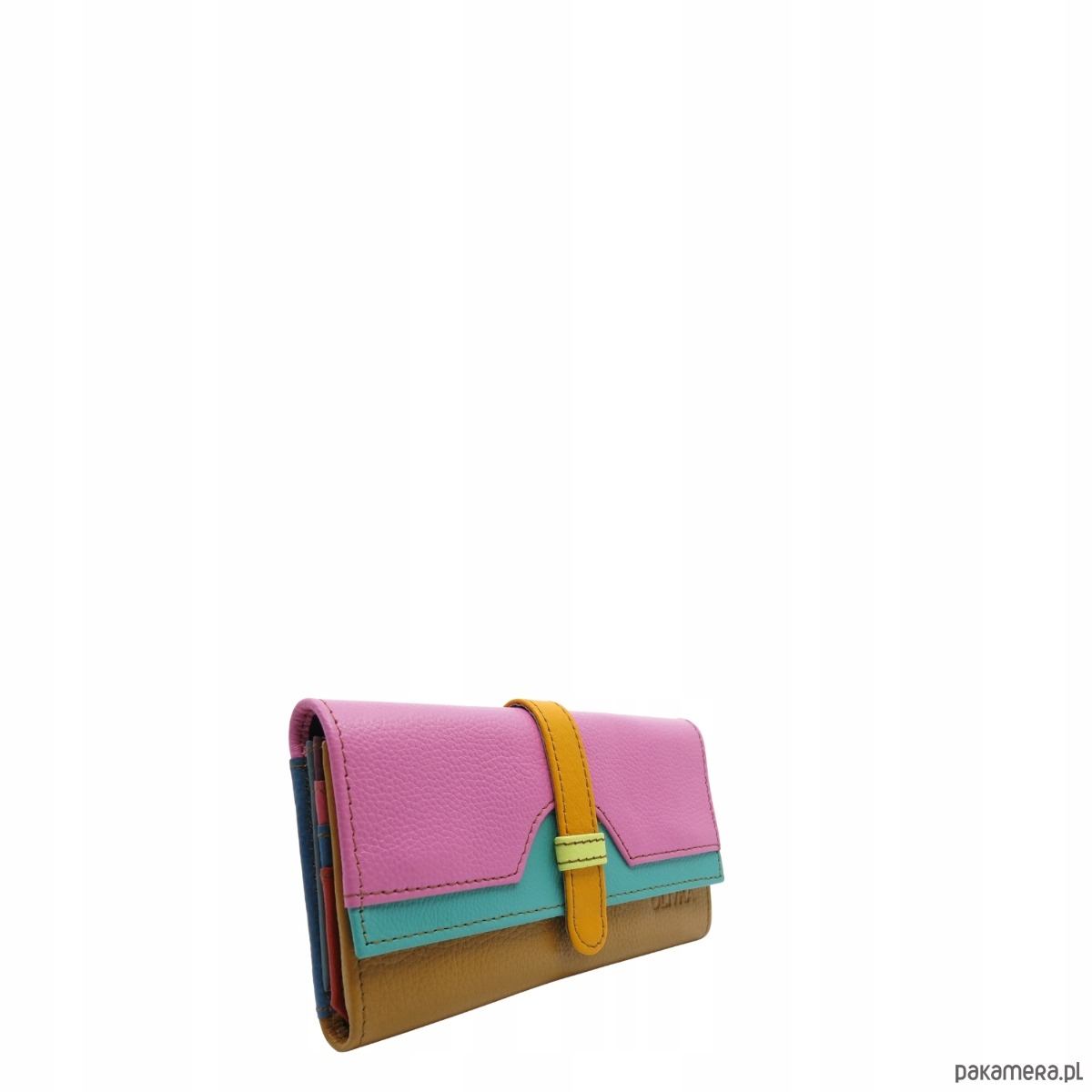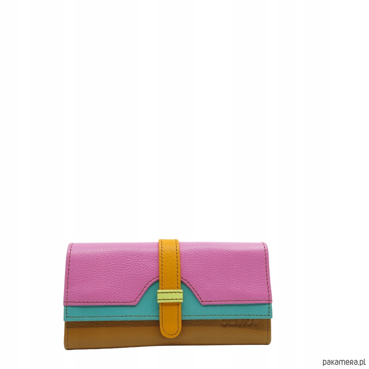 Portfel damski skórzany ze skrawków kolorowy przegródki na karty OLIVKA