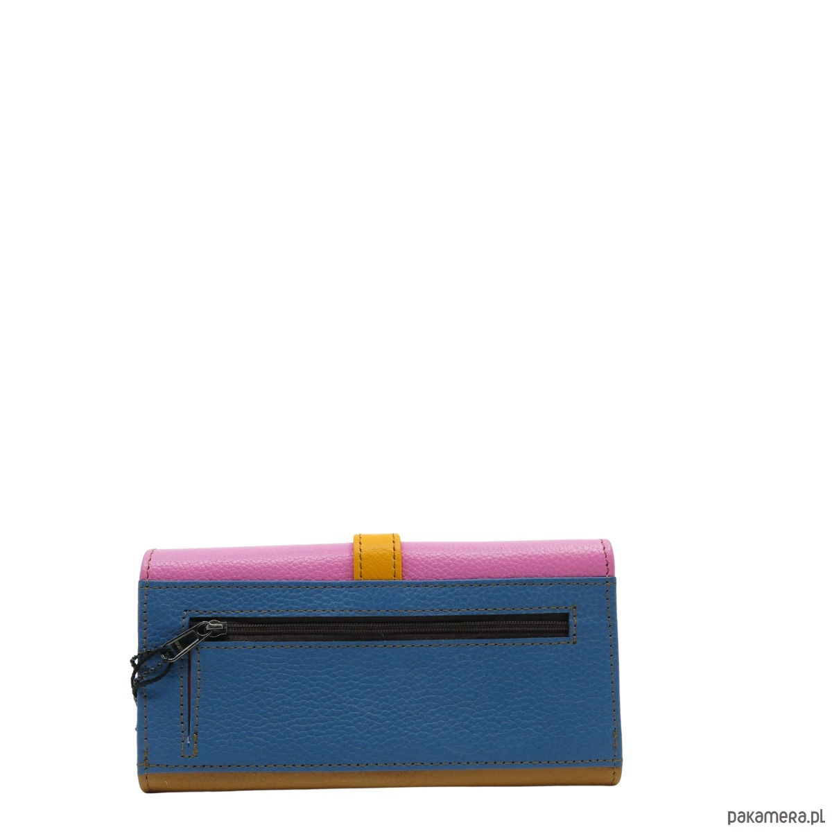 Średniej wielkości portfel wykonany ze skrawków skóry naturalnej. Jego unikalne połączenie kolorystyczne nadaje mu niepowtarzalny charakter, czyniąc go doskonałym dodatkiem. Spełni oczekiwania nawet najbardziej wymagających kobiet.