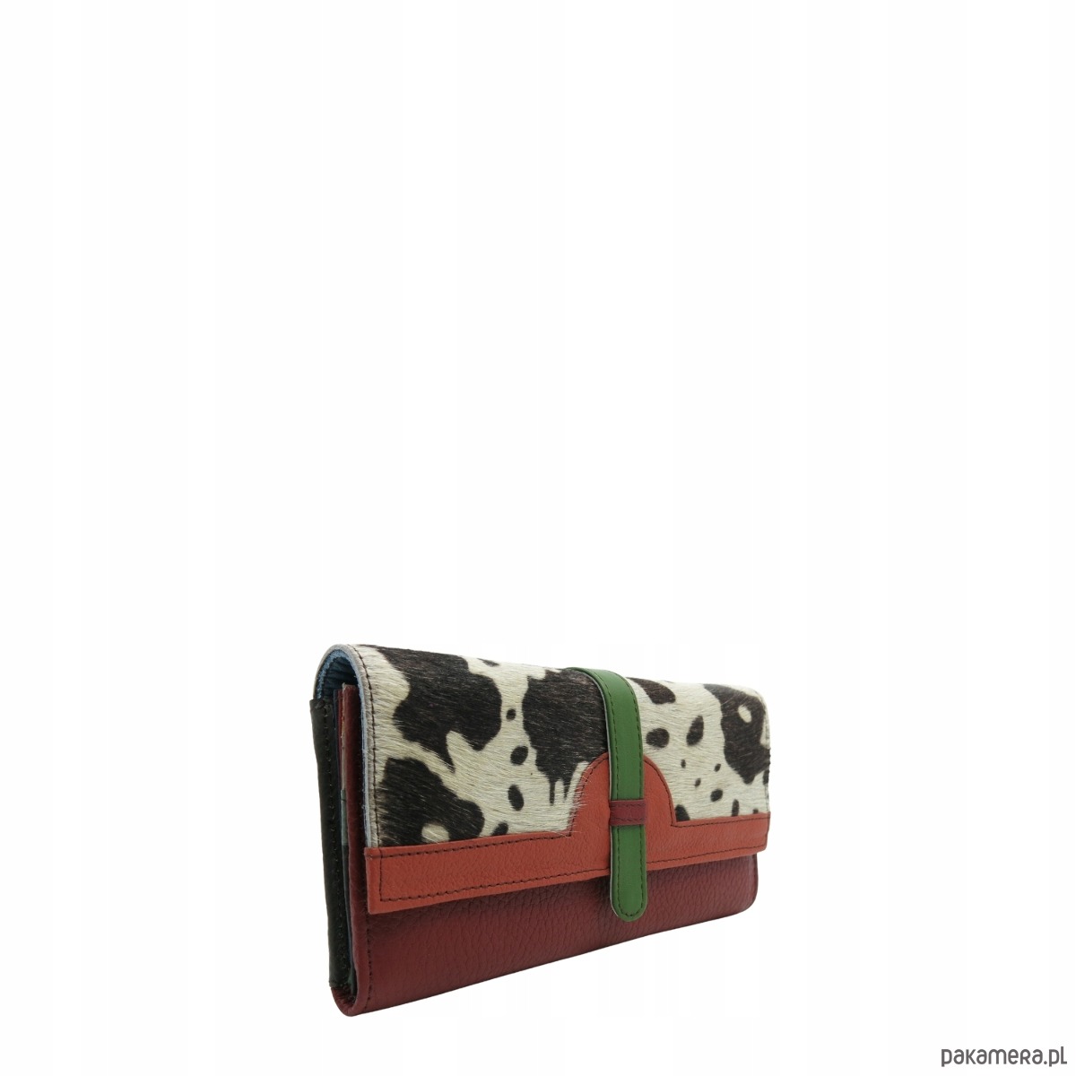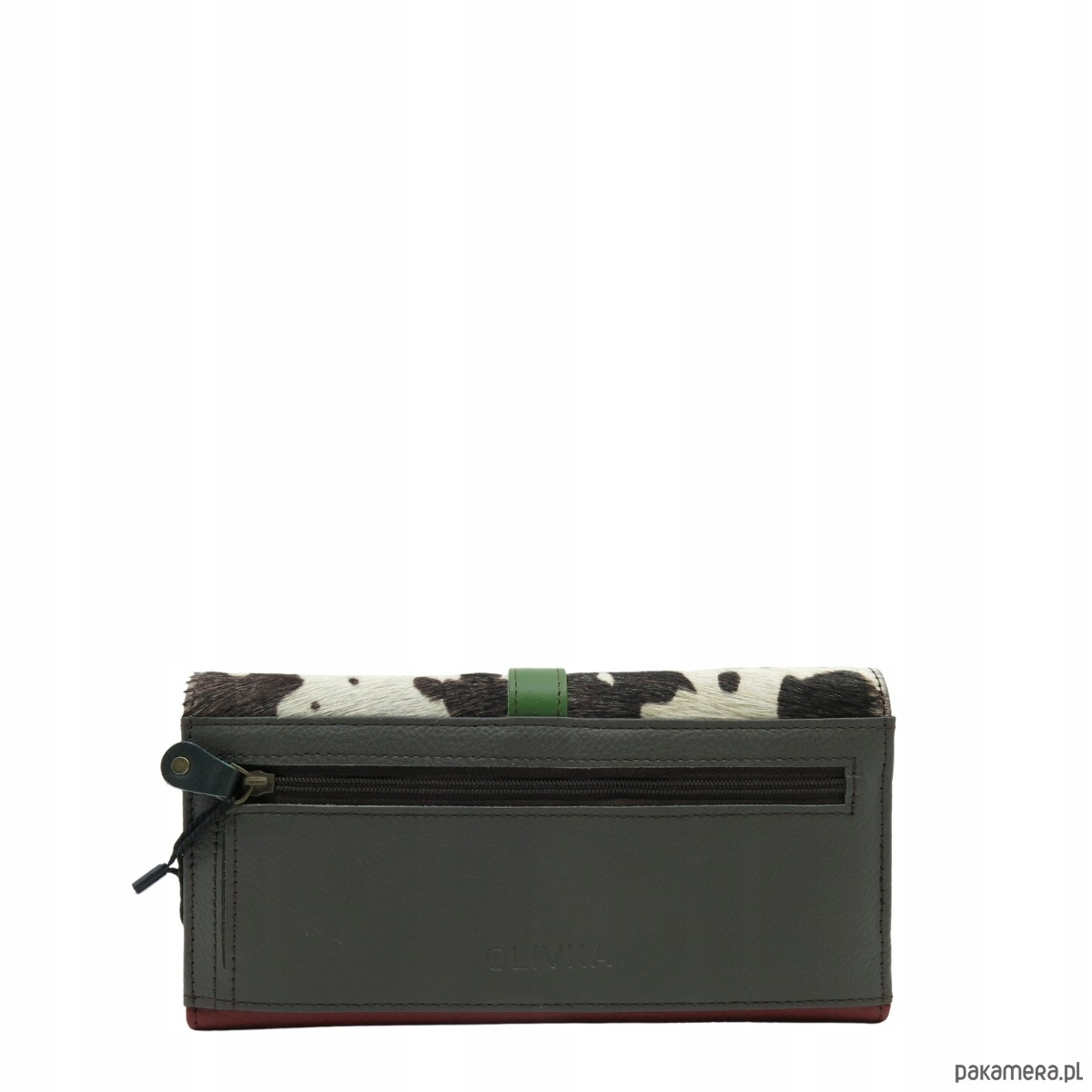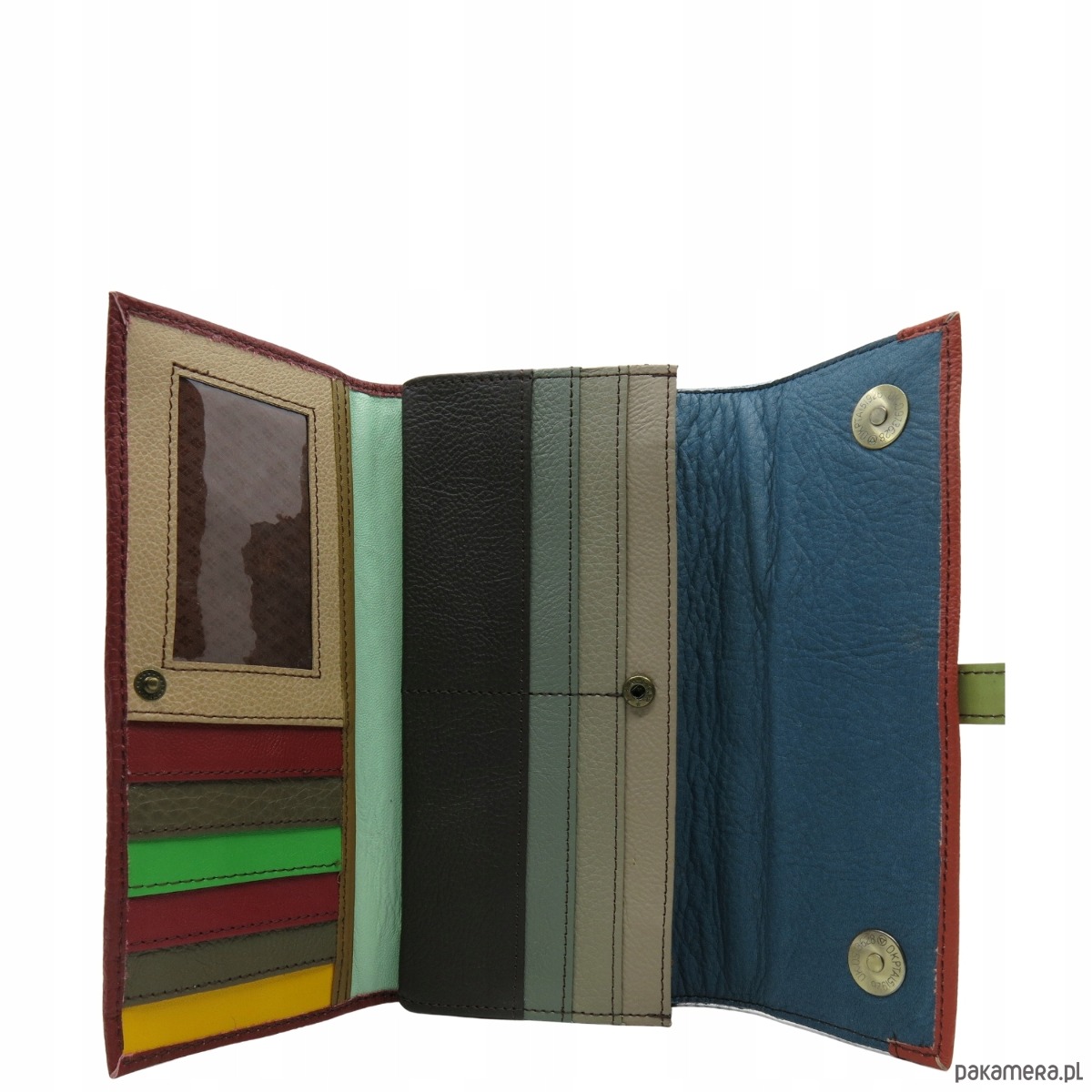 Portfel damski skórzany ze skrawków kolorowy przegródki na karty OLIVKA
