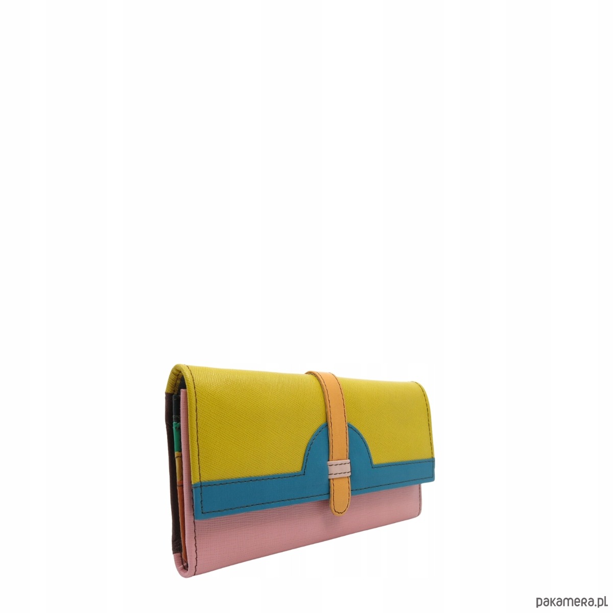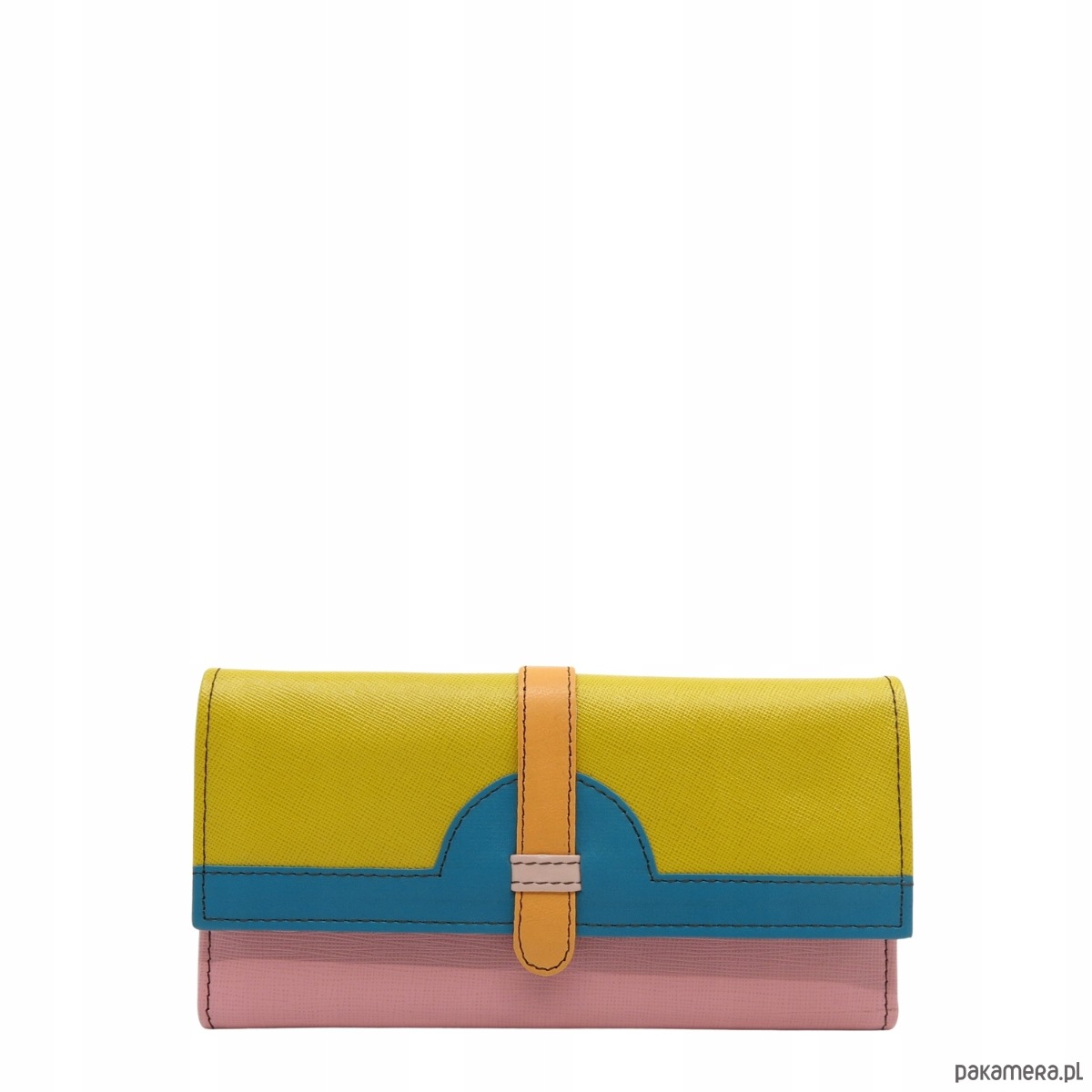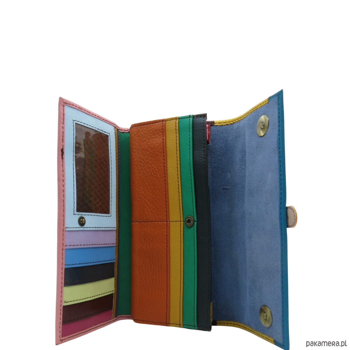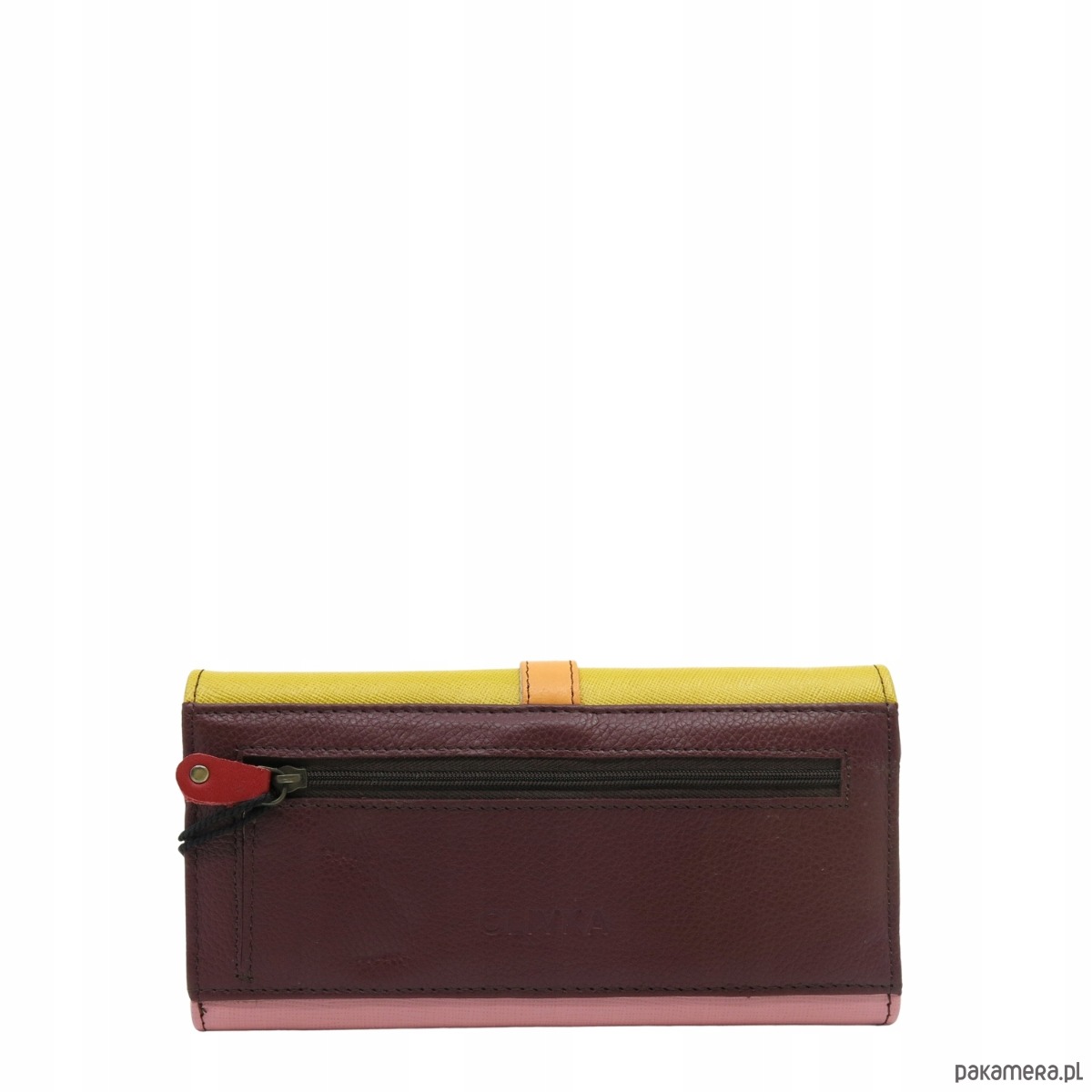 Portfel damski skórzany ze skrawków kolorowy przegródki na karty OLIVKA