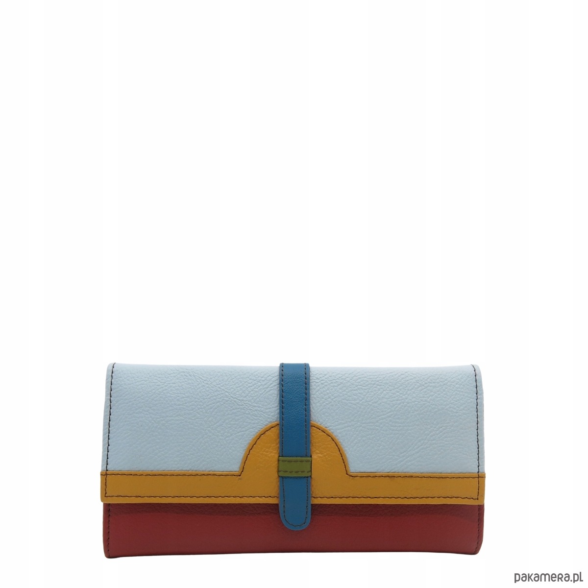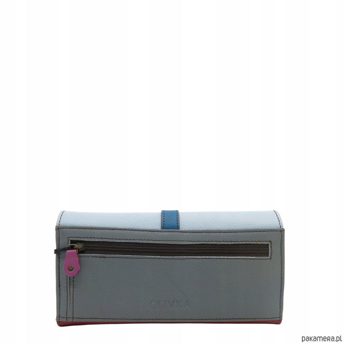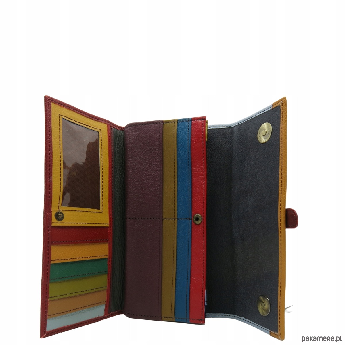 Portfel damski skórzany ze skrawków kolorowy przegródki na karty OLIVKA