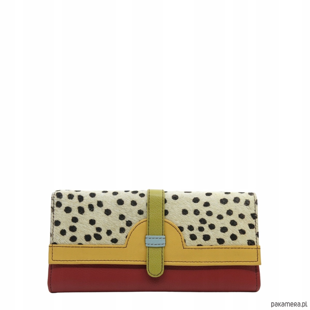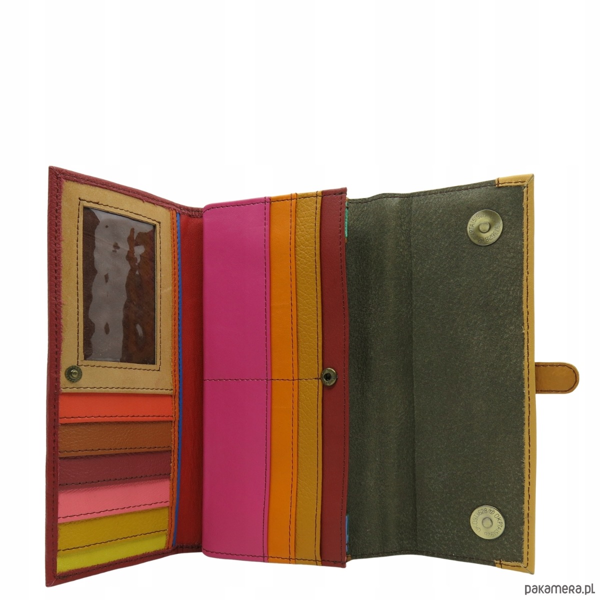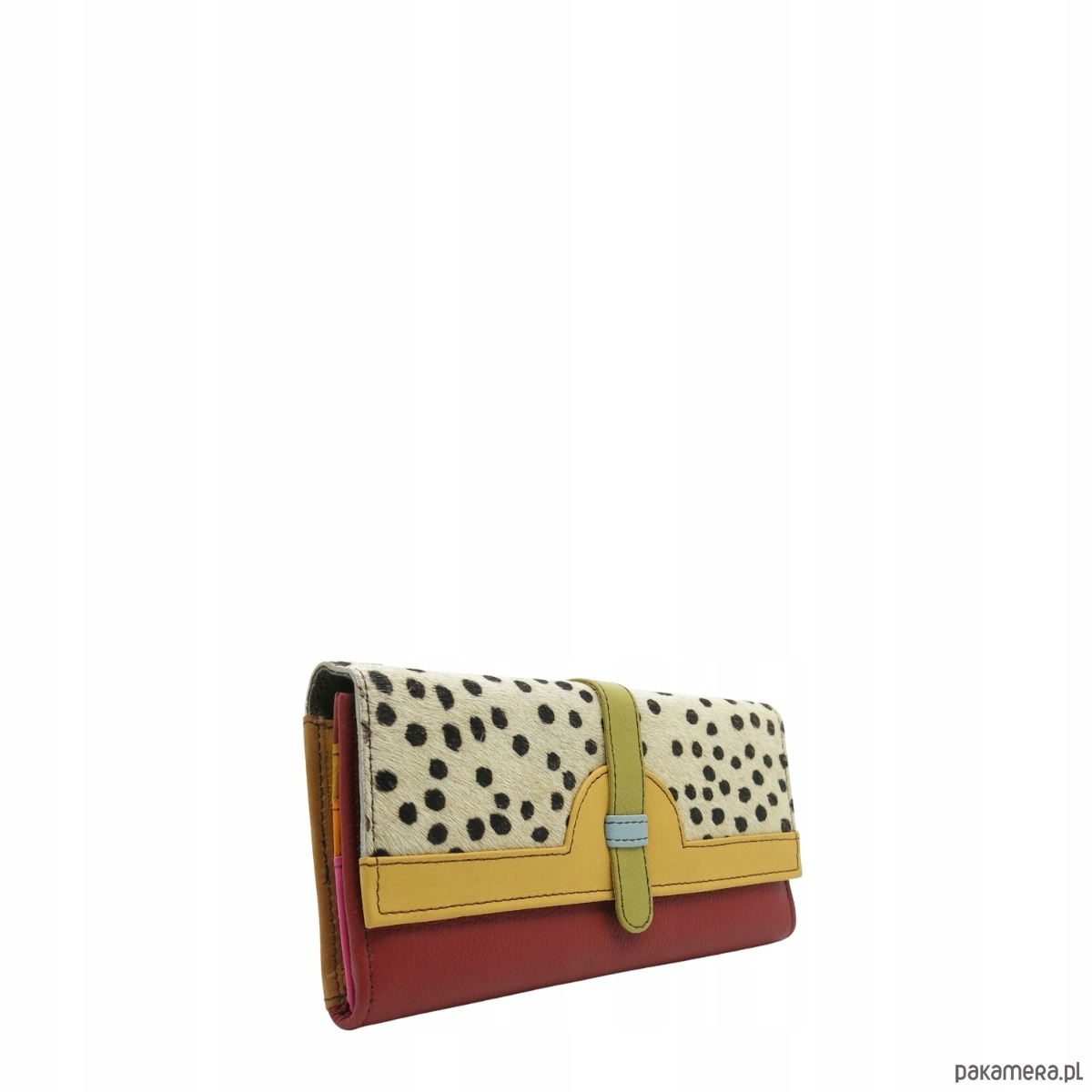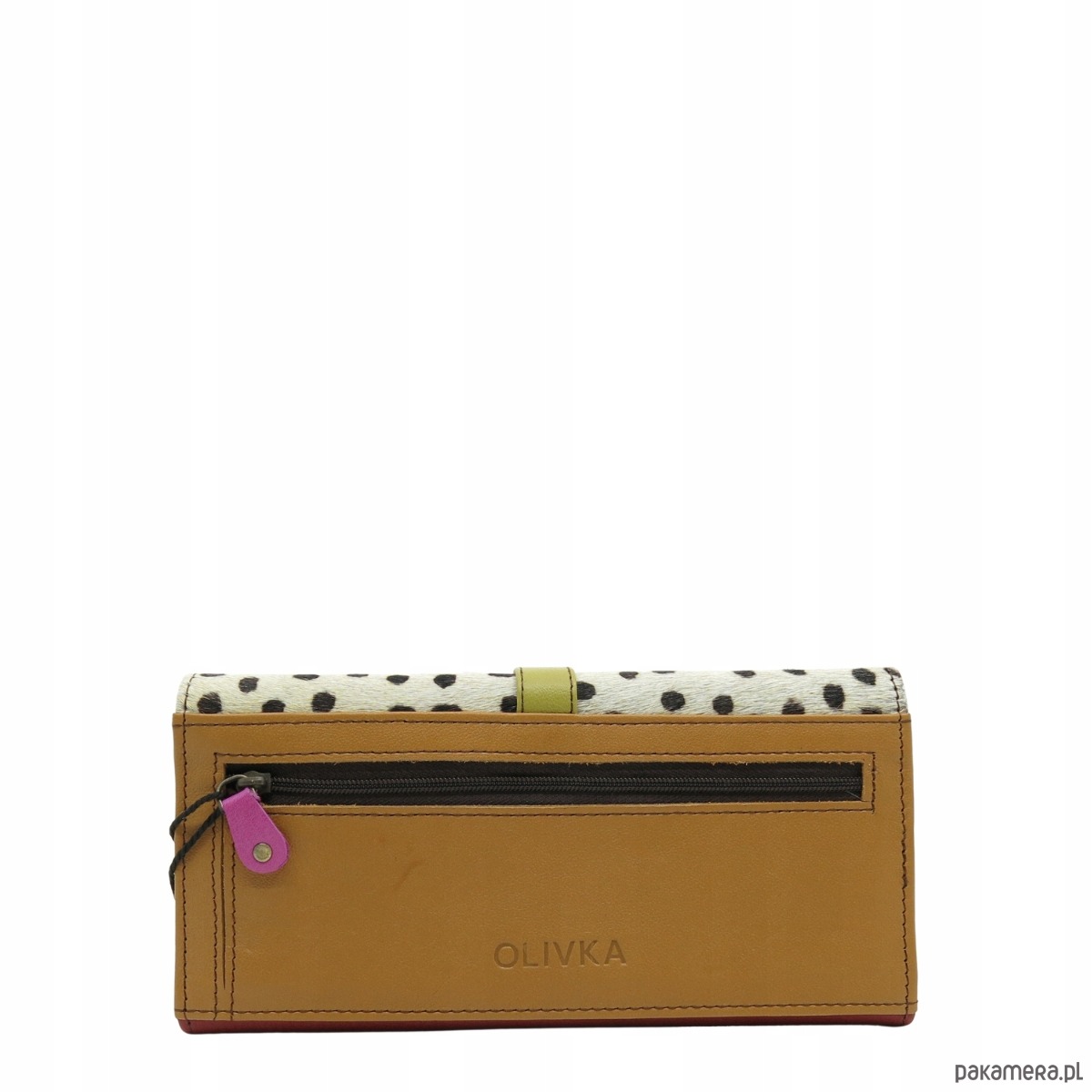 Portfel damski skórzany ze skrawków kolorowy przegródki na karty OLIVKA