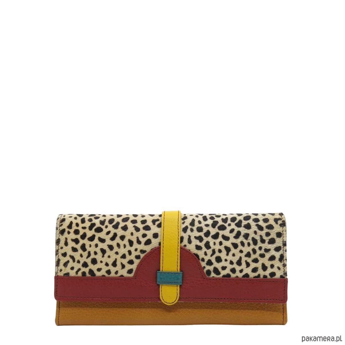 Średniej wielkości portfel wykonany ze skrawków skóry naturalnej. Jego unikalne połączenie kolorystyczne nadaje mu niepowtarzalny charakter, czyniąc go doskonałym dodatkiem. Spełni oczekiwania nawet najbardziej wymagających kobiet.