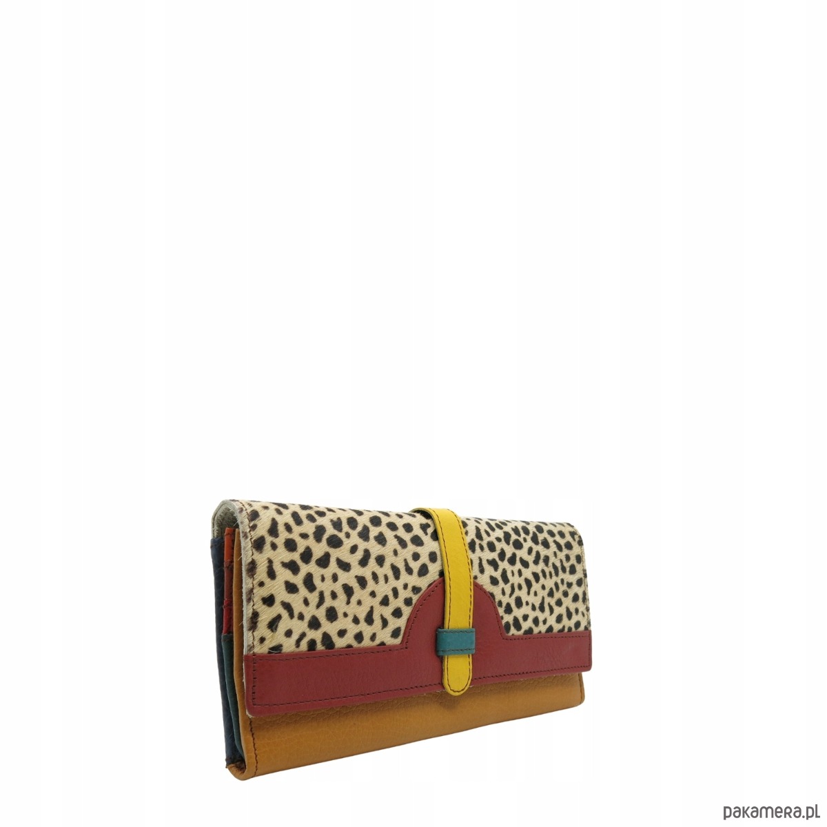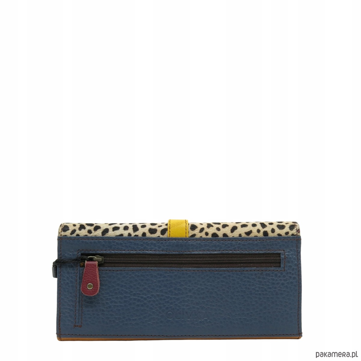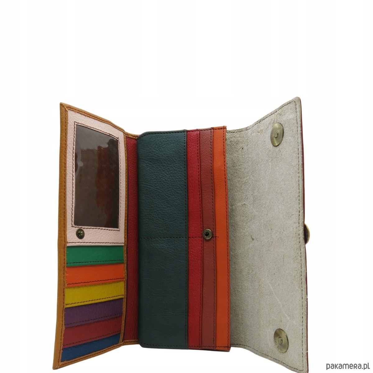 Portfel damski skórzany ze skrawków kolorowy przegródki na karty OLIVKA