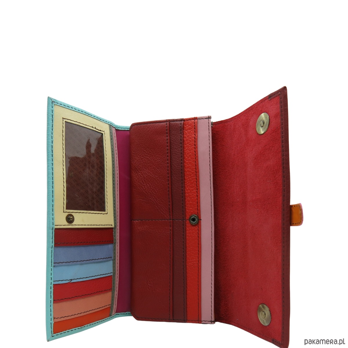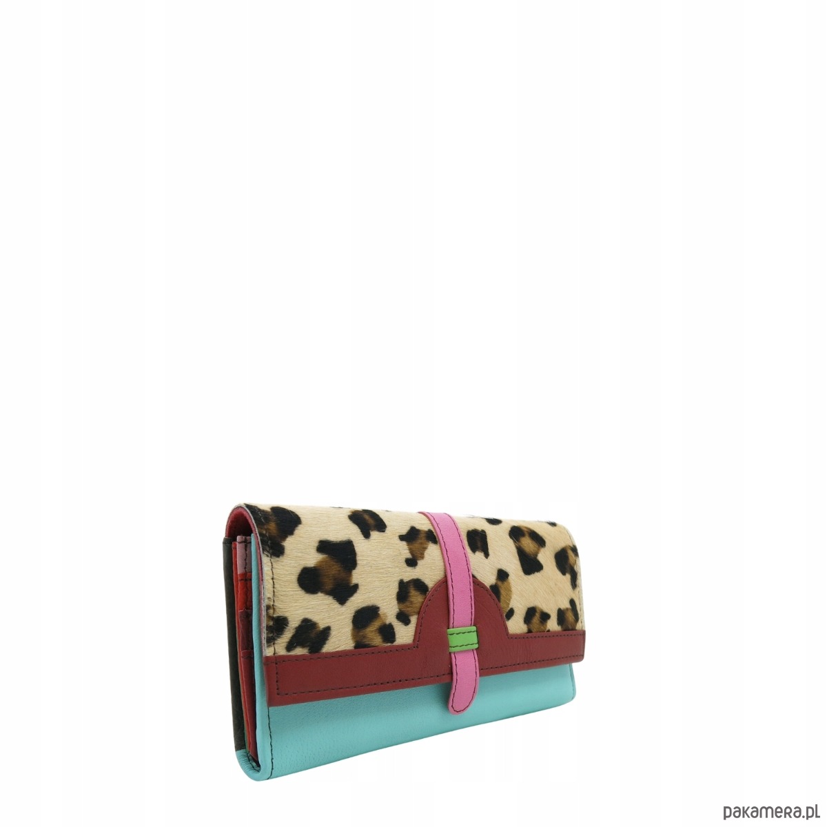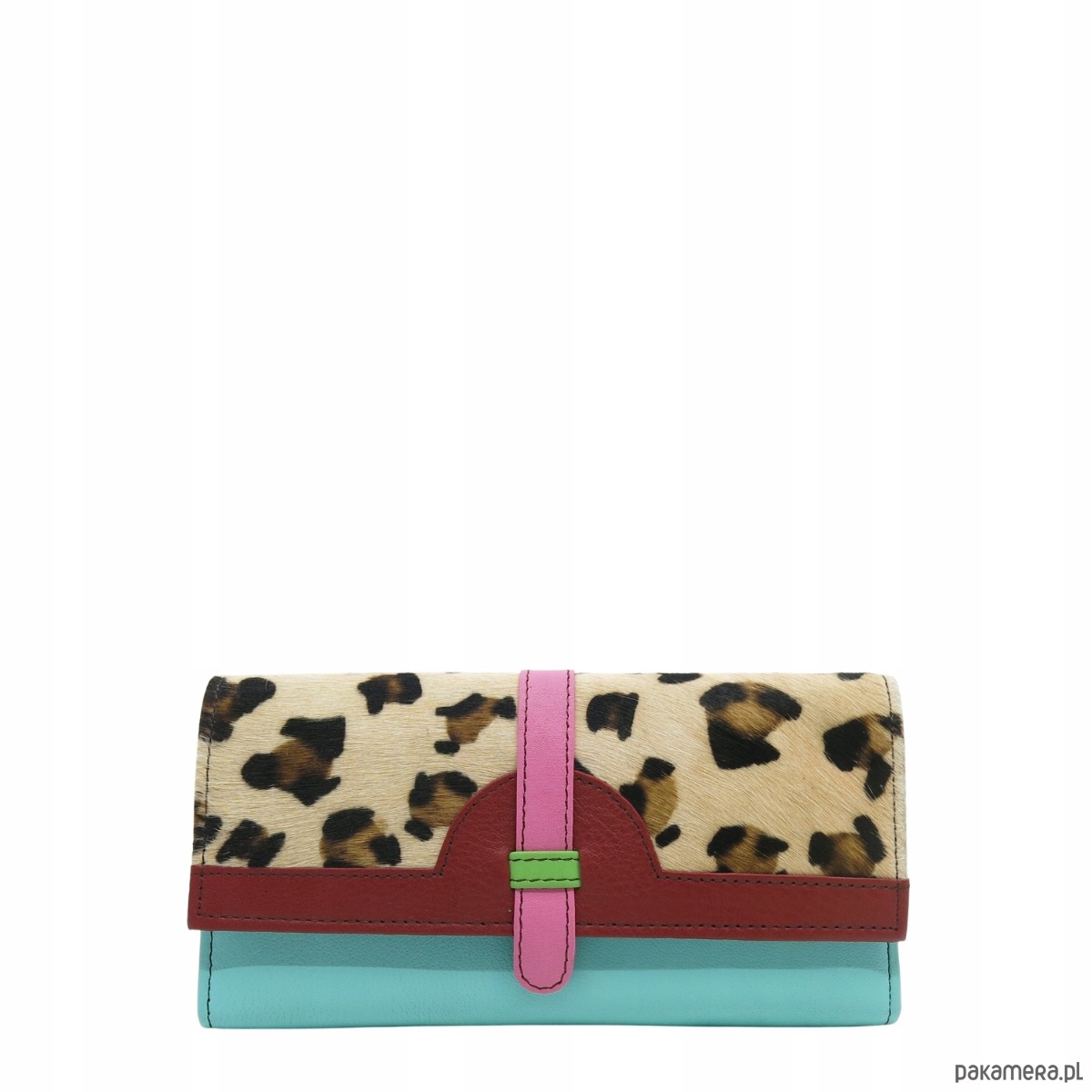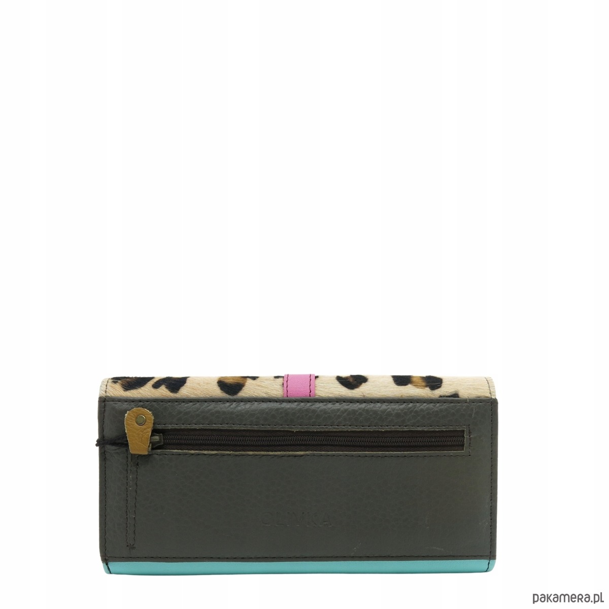 Portfel damski skórzany ze skrawków kolorowy przegródki na karty OLIVKA