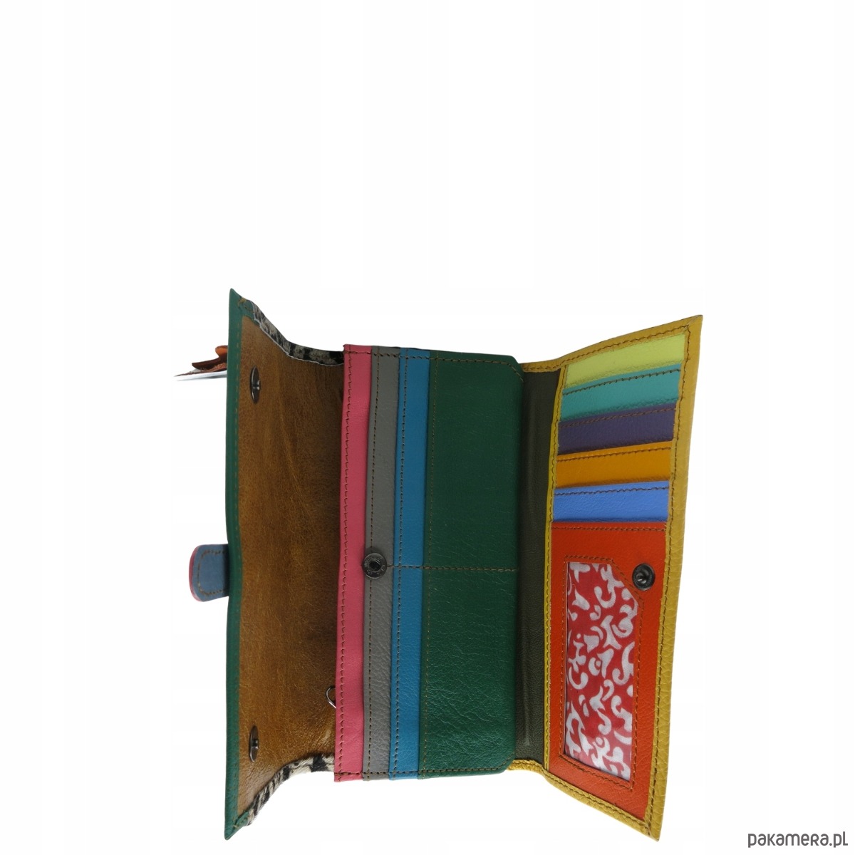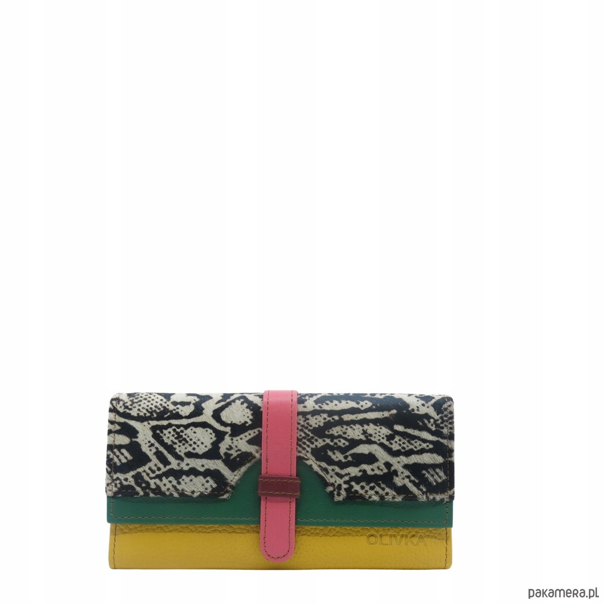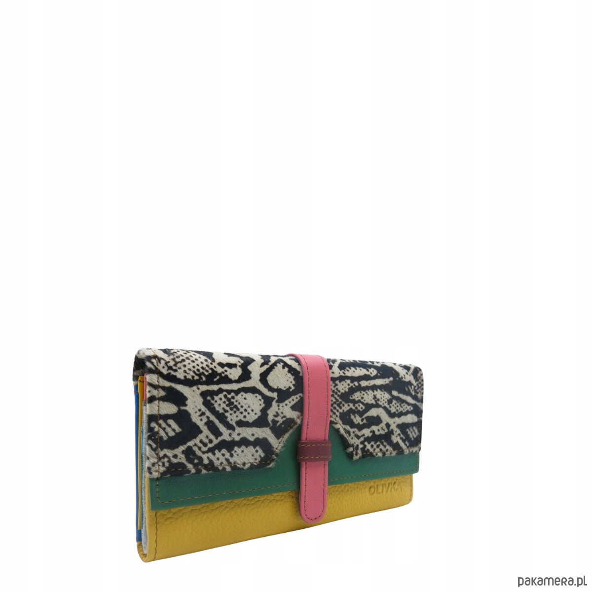 Portfel damski skórzany ze skrawków kolorowy przegródki na karty OLIVKA