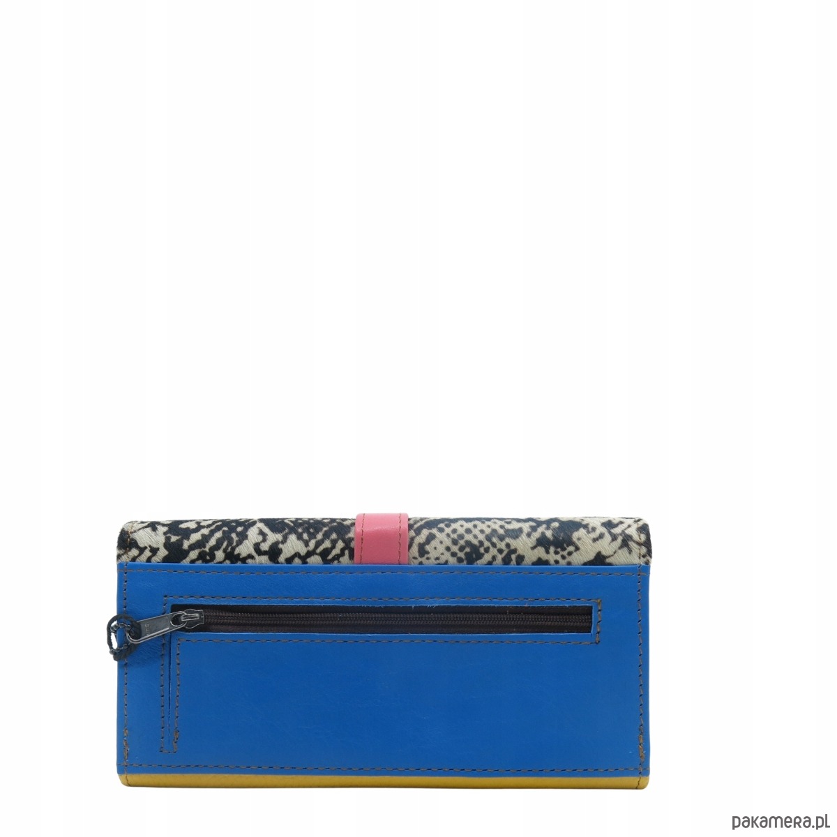 Średniej wielkości portfel wykonany ze skrawków skóry naturalnej. Jego unikalne połączenie kolorystyczne nadaje mu niepowtarzalny charakter, czyniąc go doskonałym dodatkiem. Spełni oczekiwania nawet najbardziej wymagających kobiet.