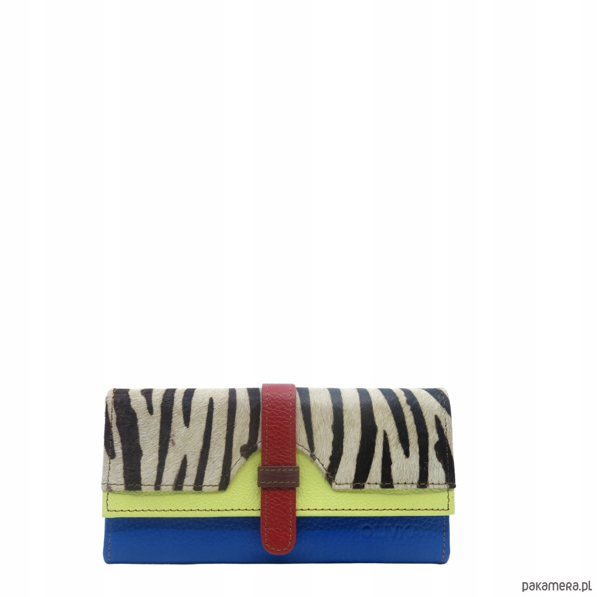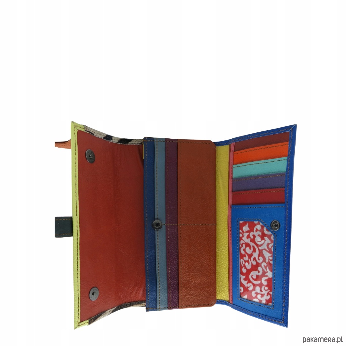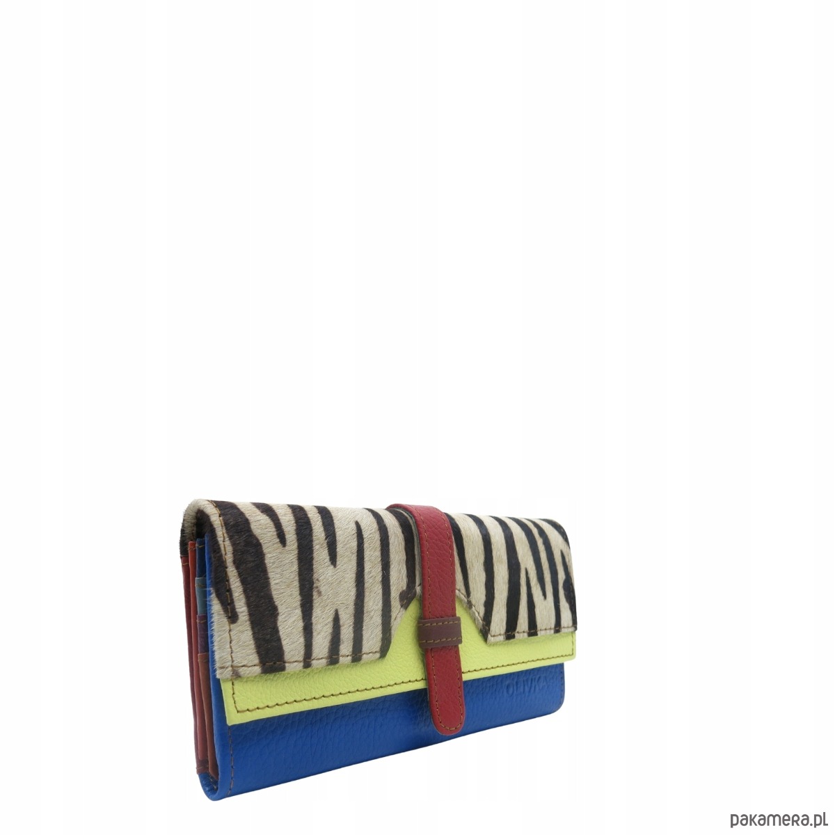 Portfel damski skórzany ze skrawków kolorowy przegródki na karty OLIVKA