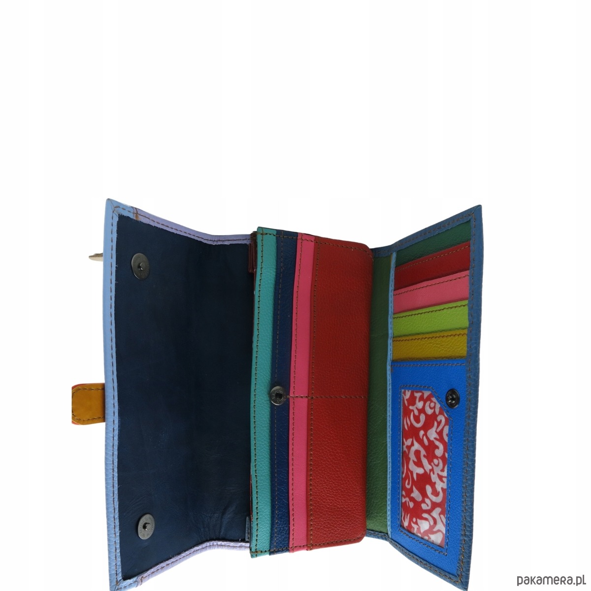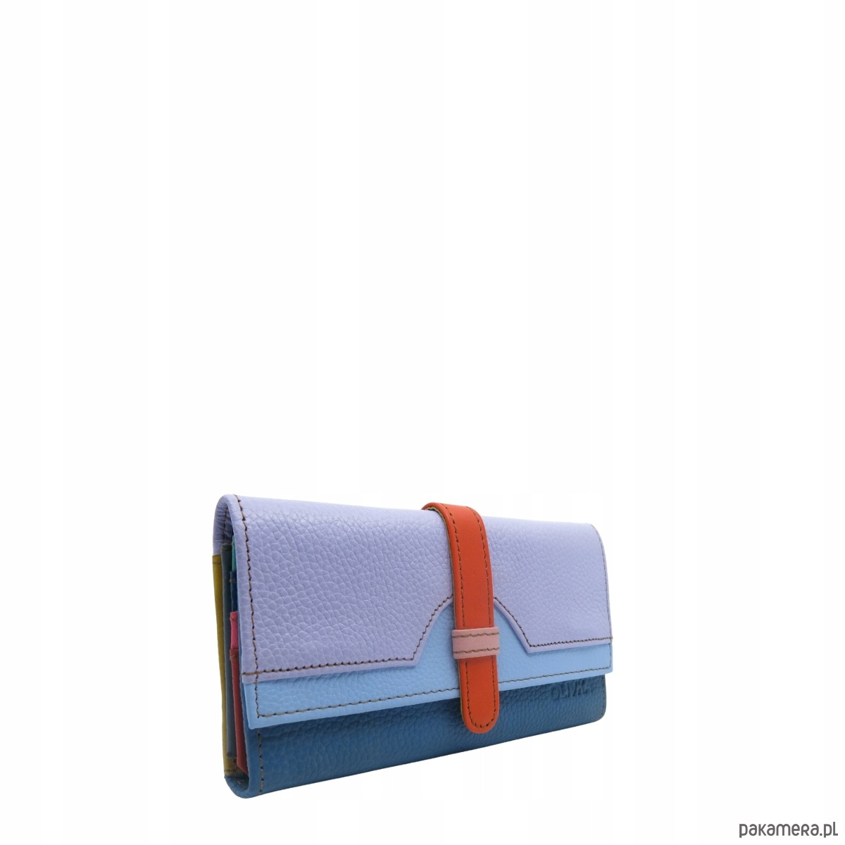 Portfel damski skórzany ze skrawków kolorowy przegródki na karty OLIVKA