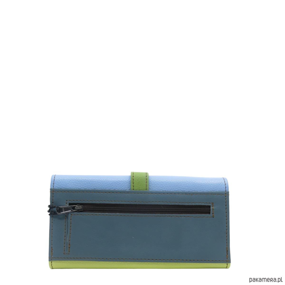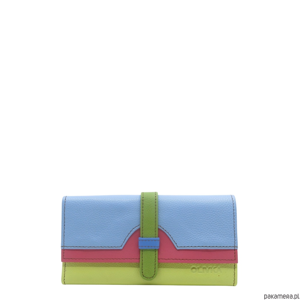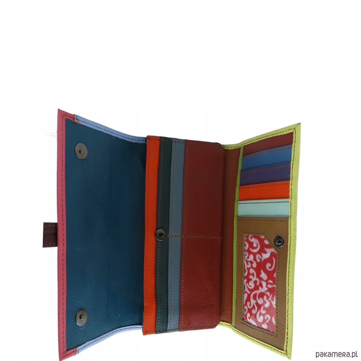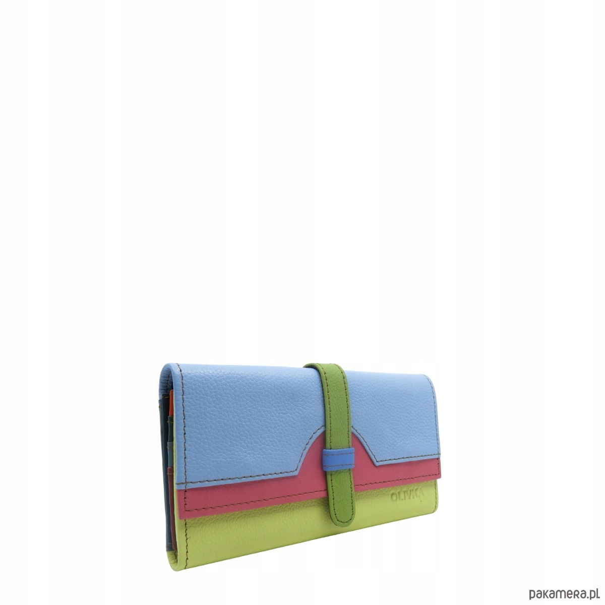 Portfel damski skórzany ze skrawków kolorowy przegródki na karty OLIVKA