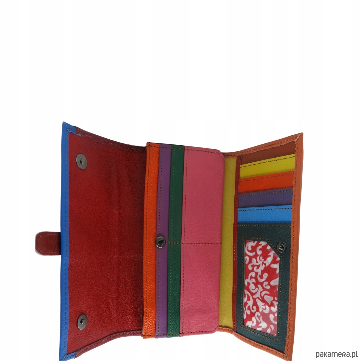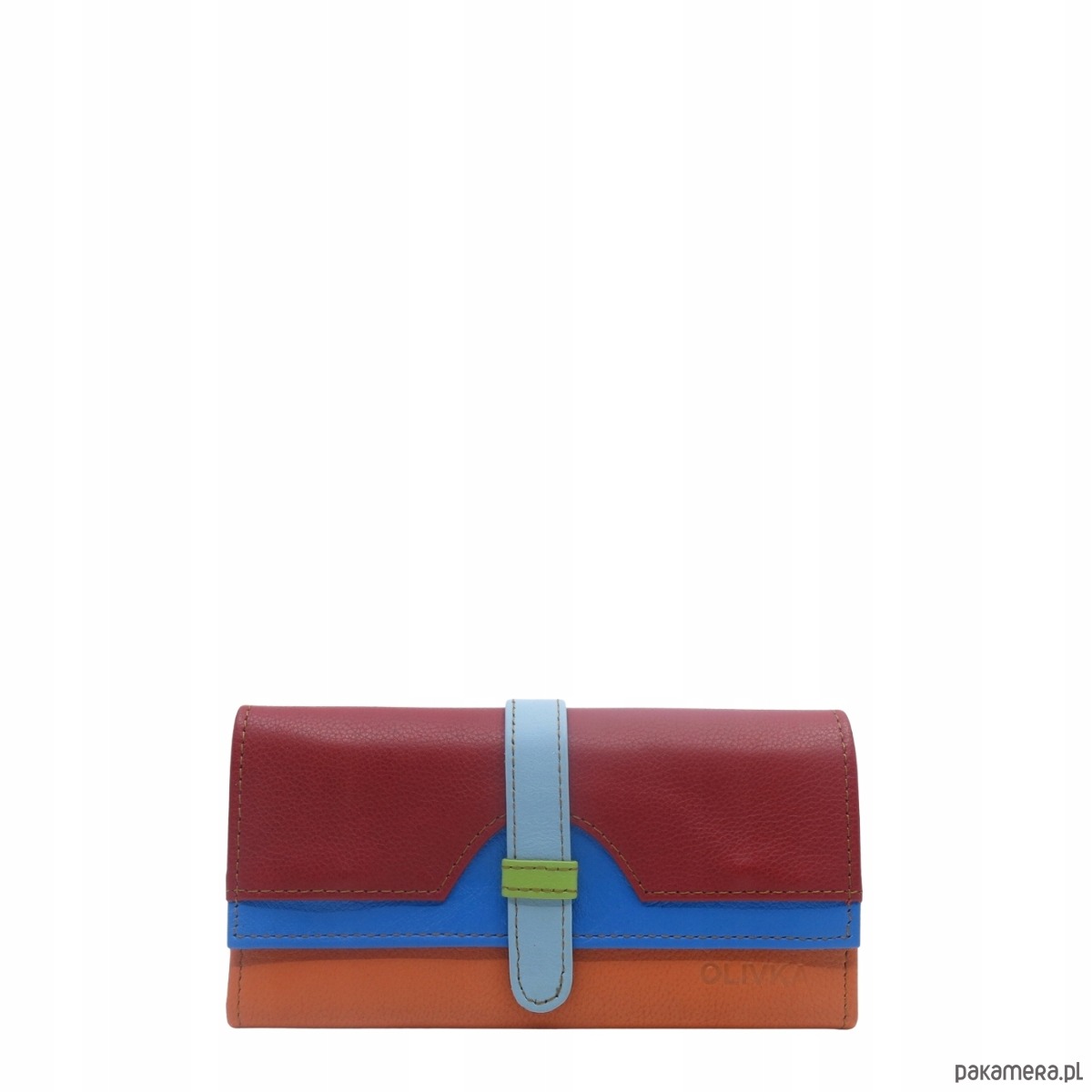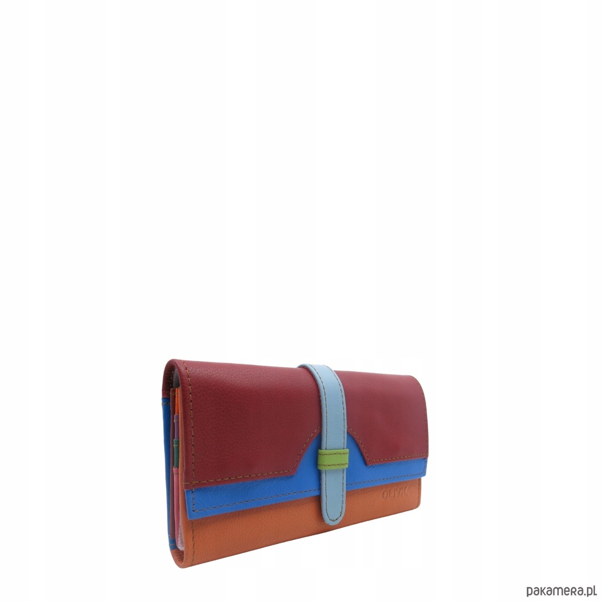 Portfel damski skórzany ze skrawków kolorowy przegródki na karty OLIVKA