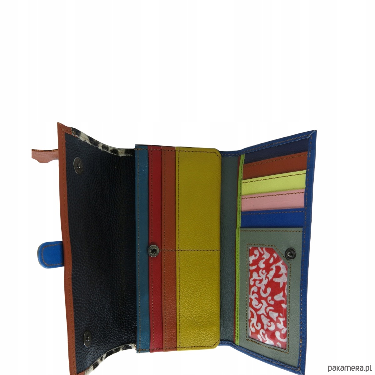Portfel damski skórzany ze skrawków kolorowy przegródki na karty OLIVKA