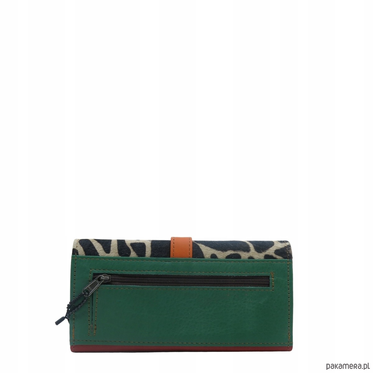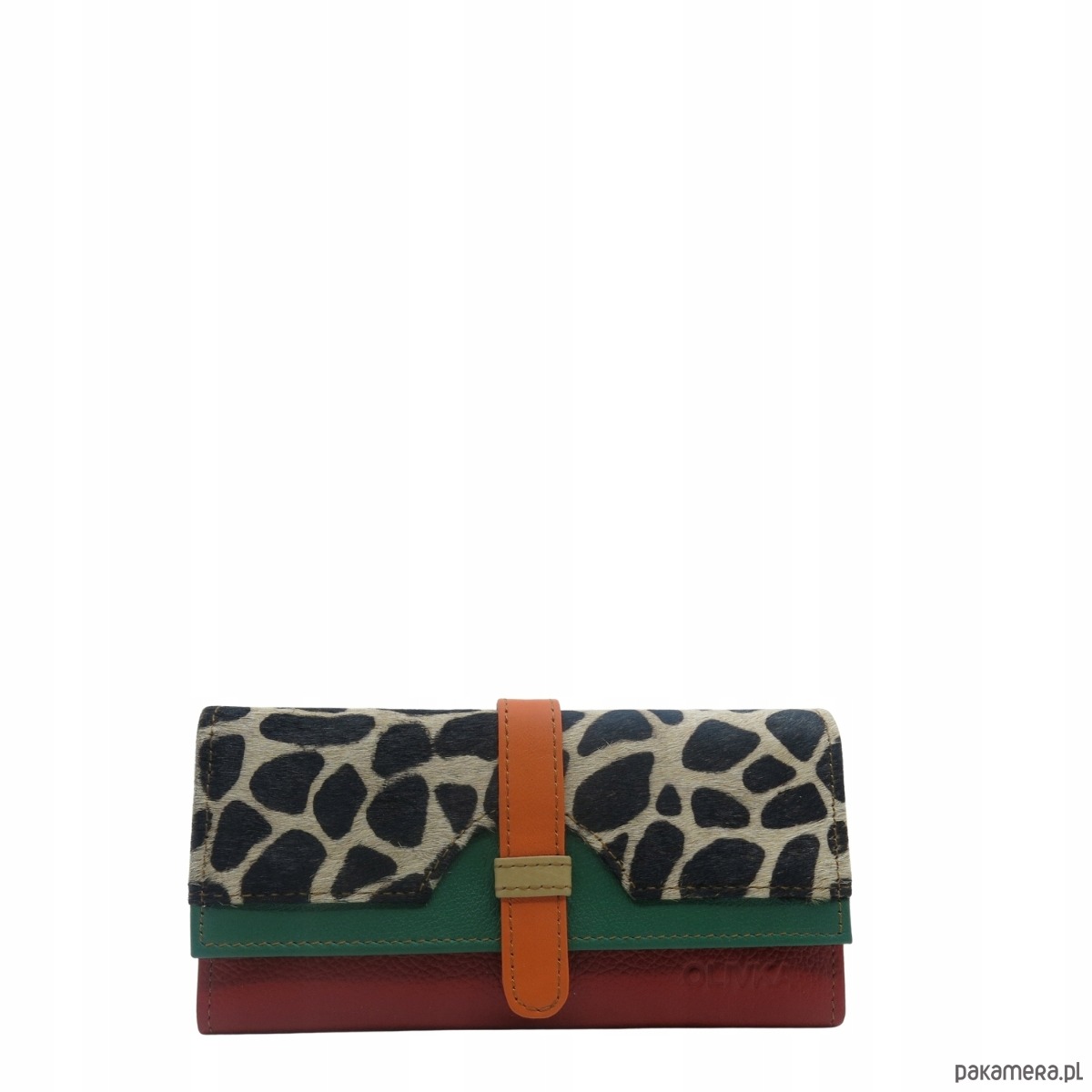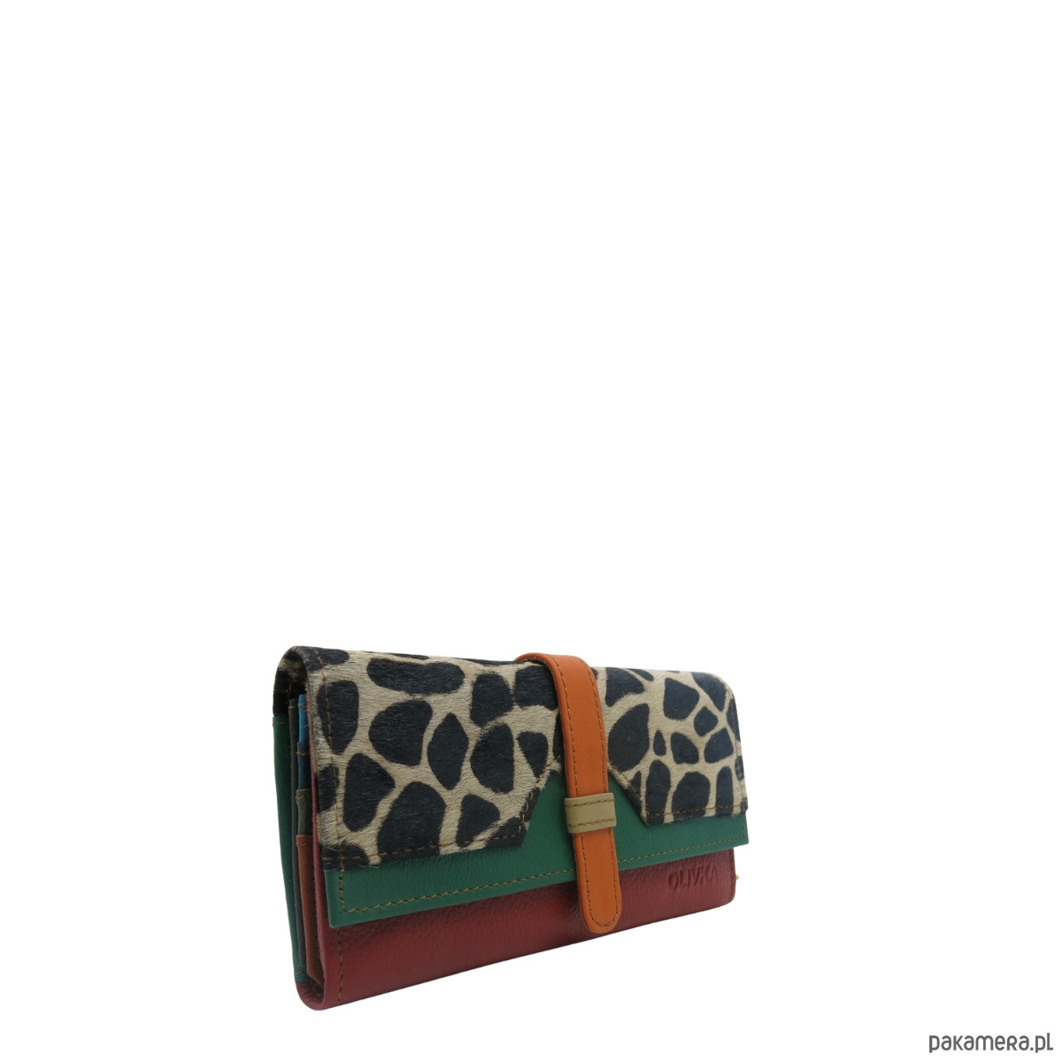 Portfel damski skórzany ze skrawków kolorowy przegródki na karty OLIVKA