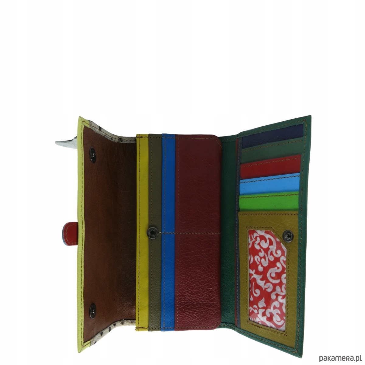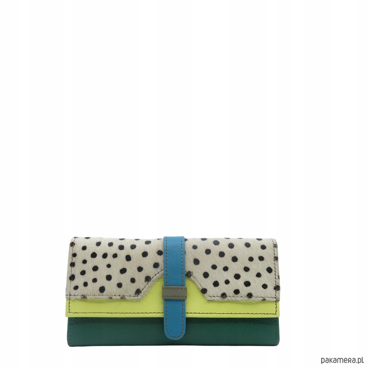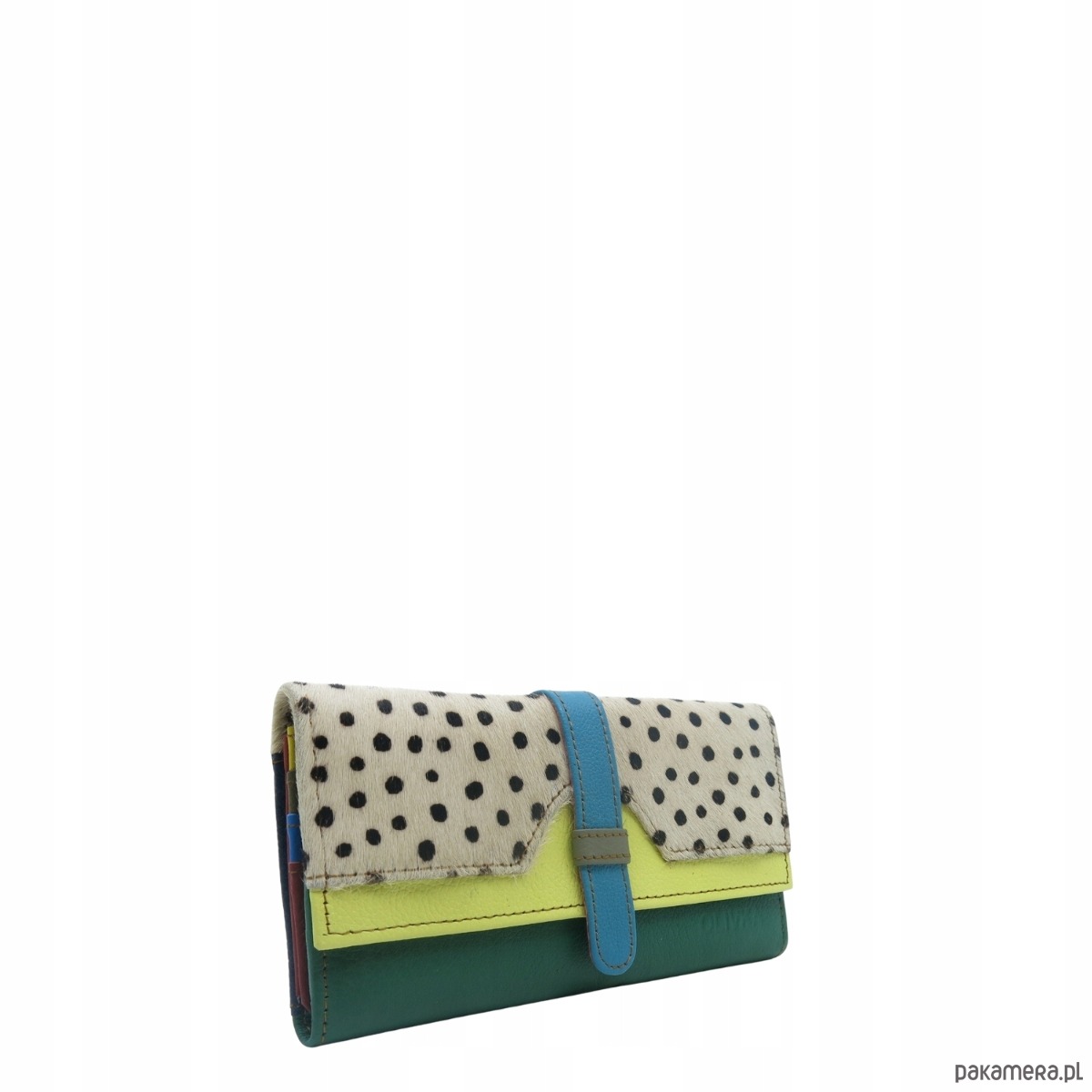 Portfel damski skórzany ze skrawków kolorowy przegródki na karty OLIVKA