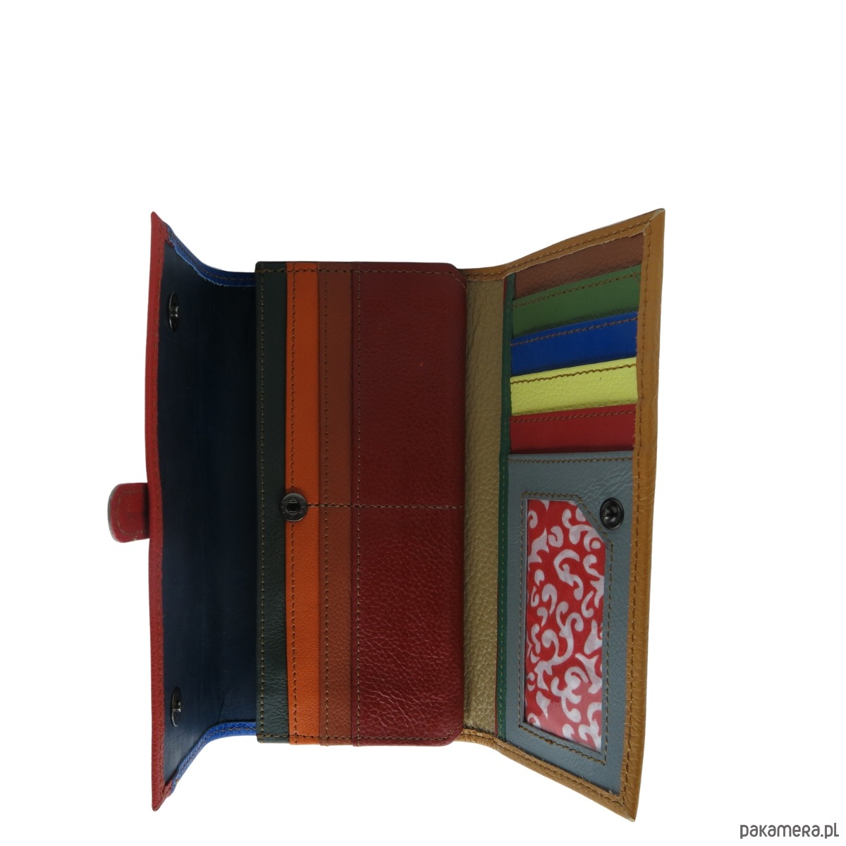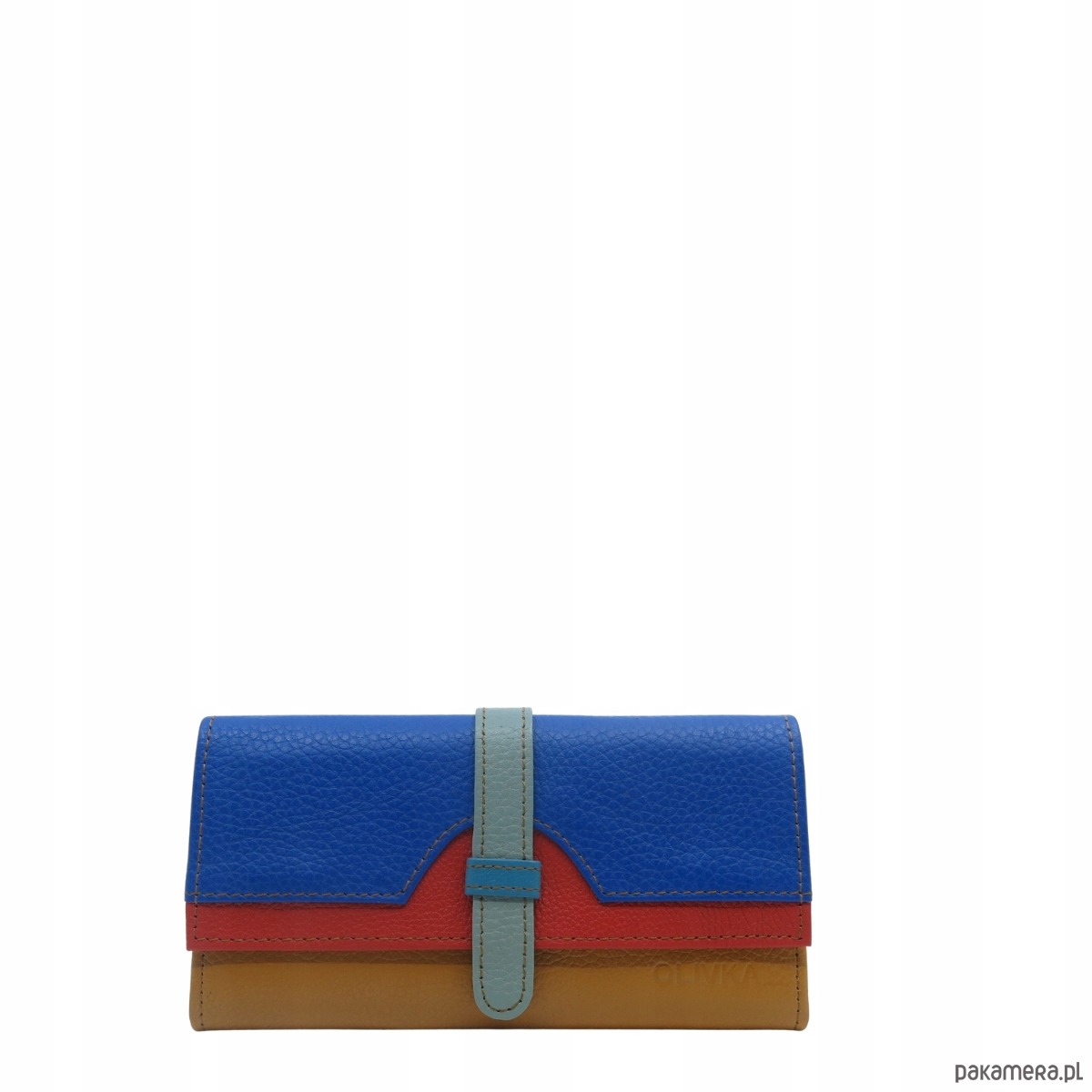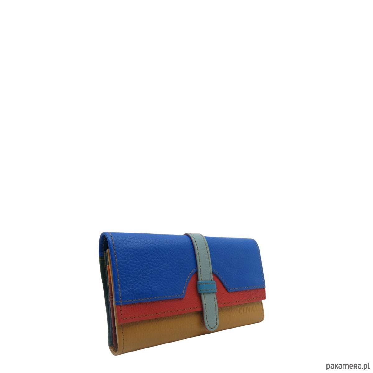 Portfel damski skórzany ze skrawków kolorowy przegródki na karty OLIVKA