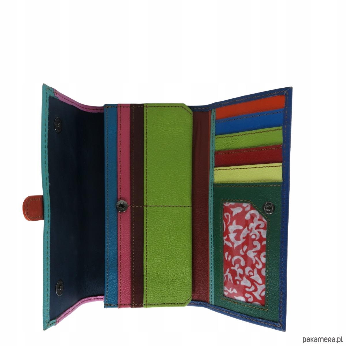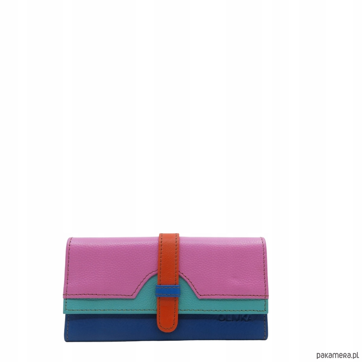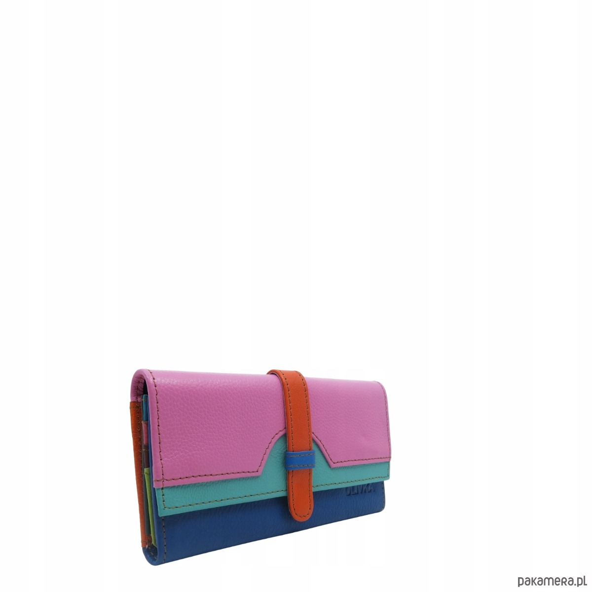 Portfel damski skórzany ze skrawków kolorowy przegródki na karty OLIVKA
