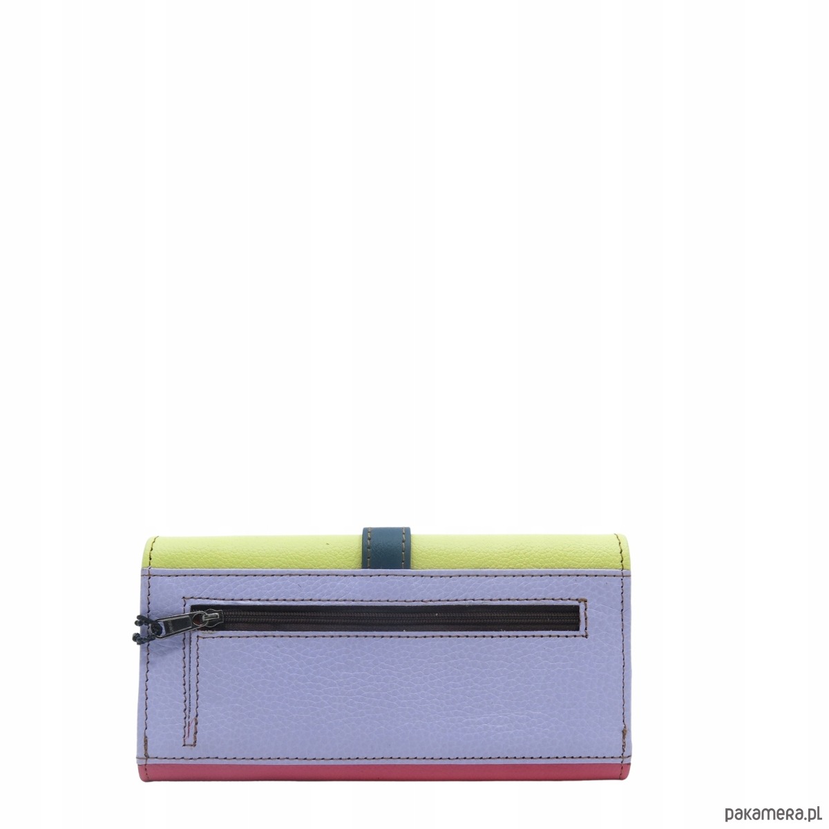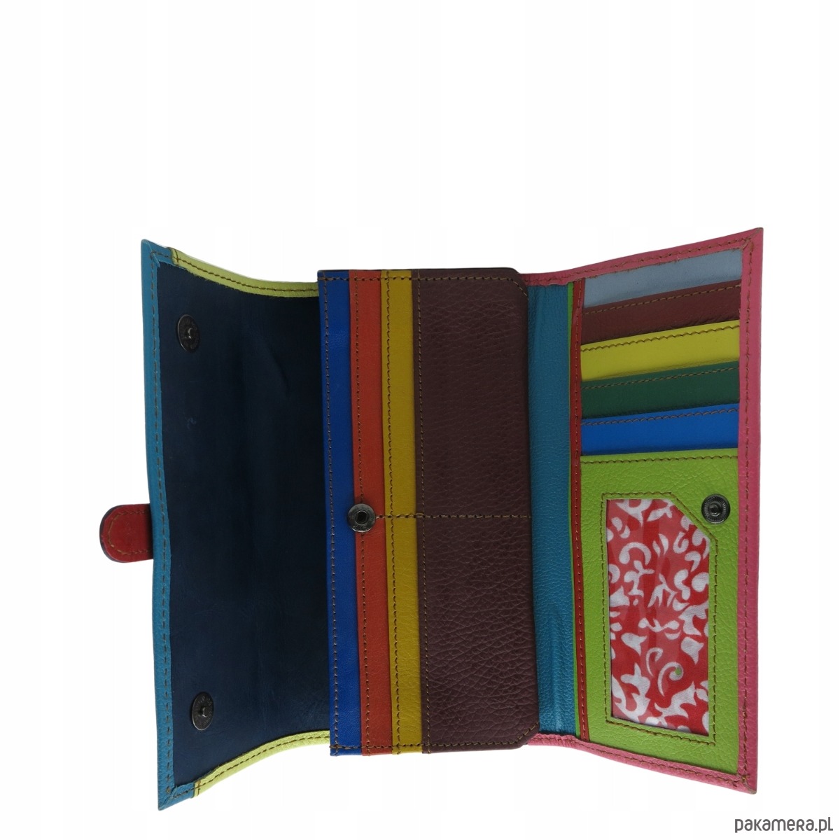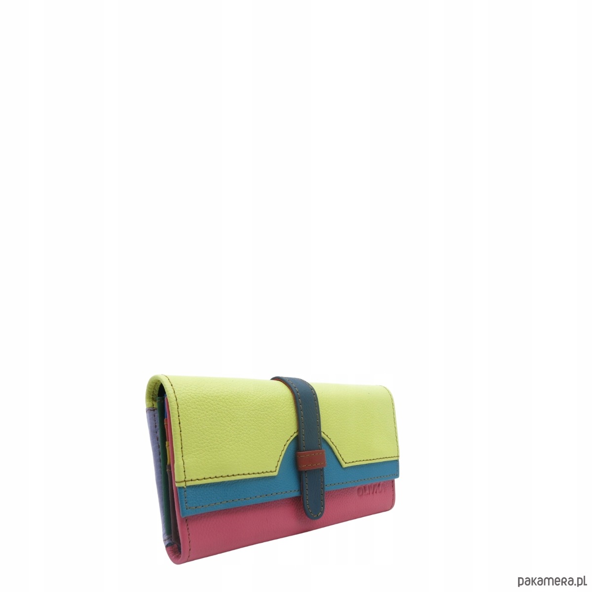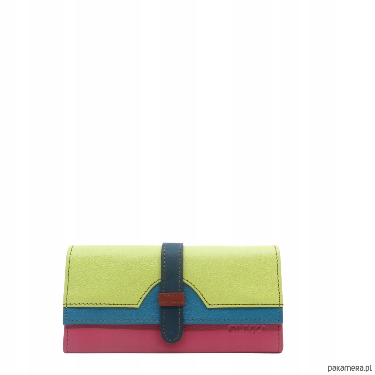 Portfel damski skórzany ze skrawków kolorowy przegródki na karty OLIVKA
