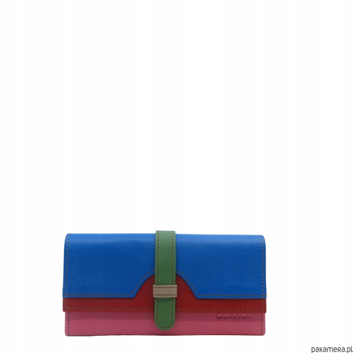 Portfel damski skórzany ze skrawków kolorowy przegródki na karty OLIVKA
