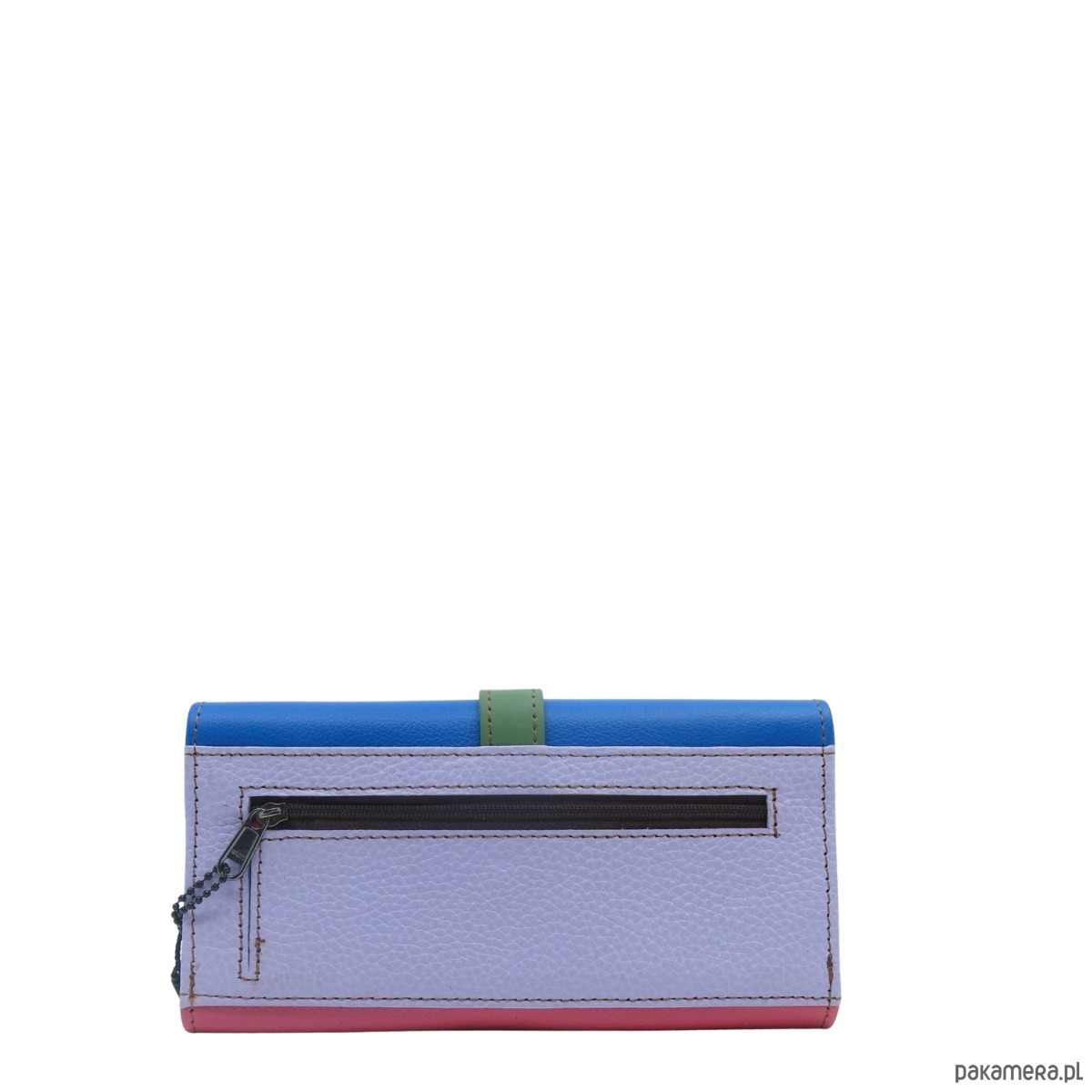 Średniej wielkości portfel wykonany ze skrawków skóry naturalnej. Jego unikalne połączenie kolorystyczne nadaje mu niepowtarzalny charakter, czyniąc go doskonałym dodatkiem. Spełni oczekiwania nawet najbardziej wymagających kobiet.