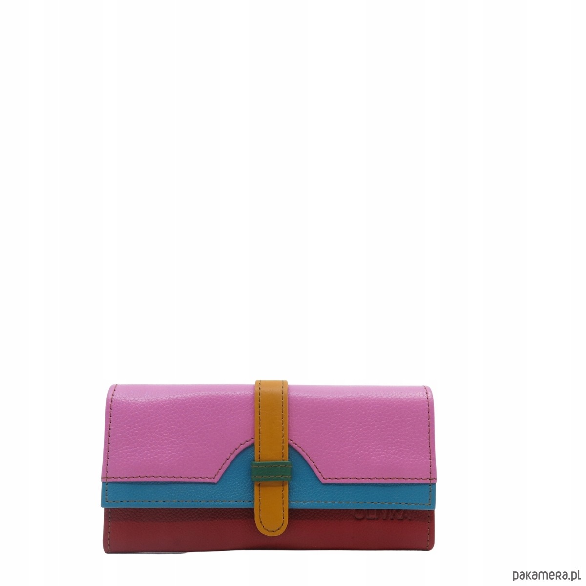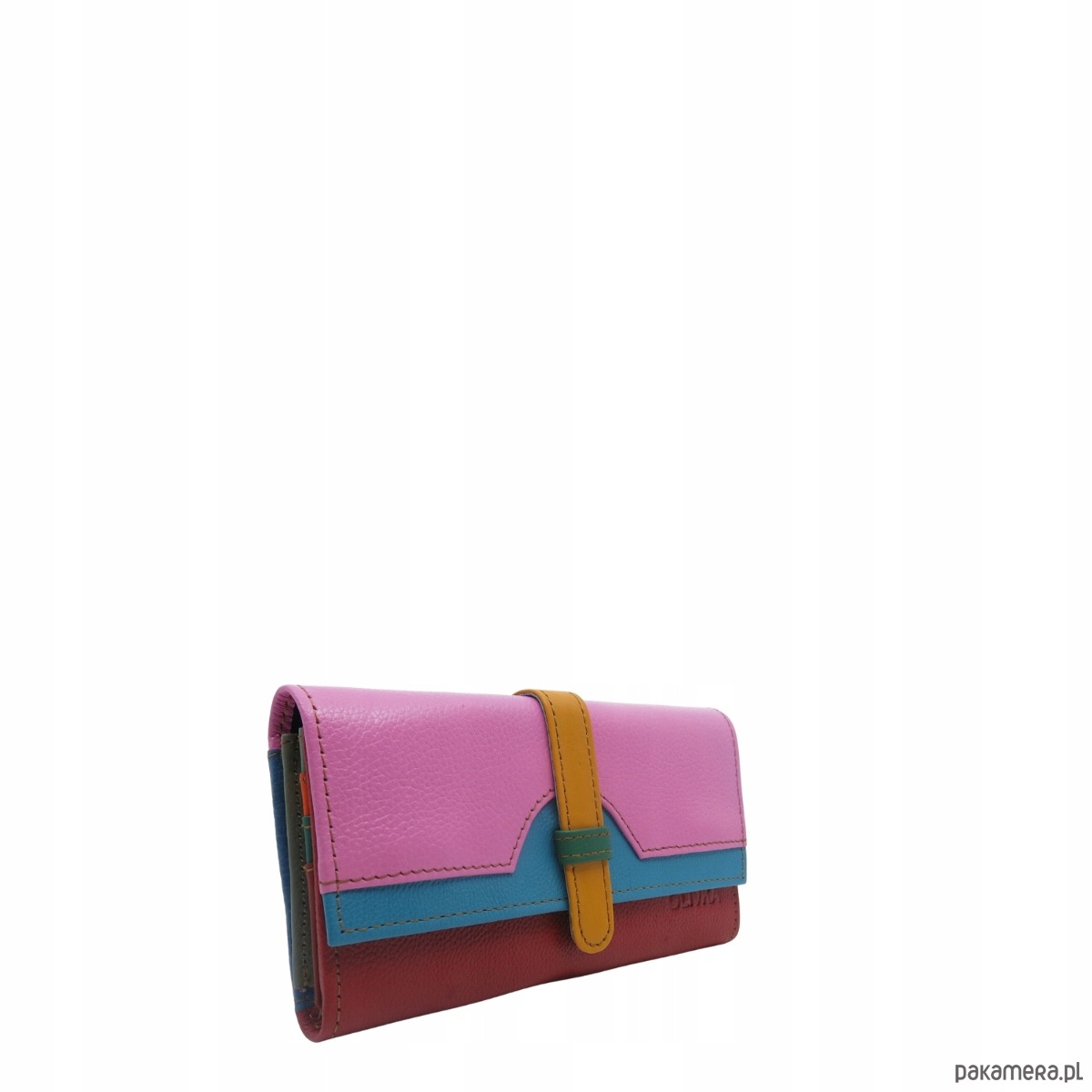 Portfel damski skórzany ze skrawków kolorowy przegródki na karty OLIVKA