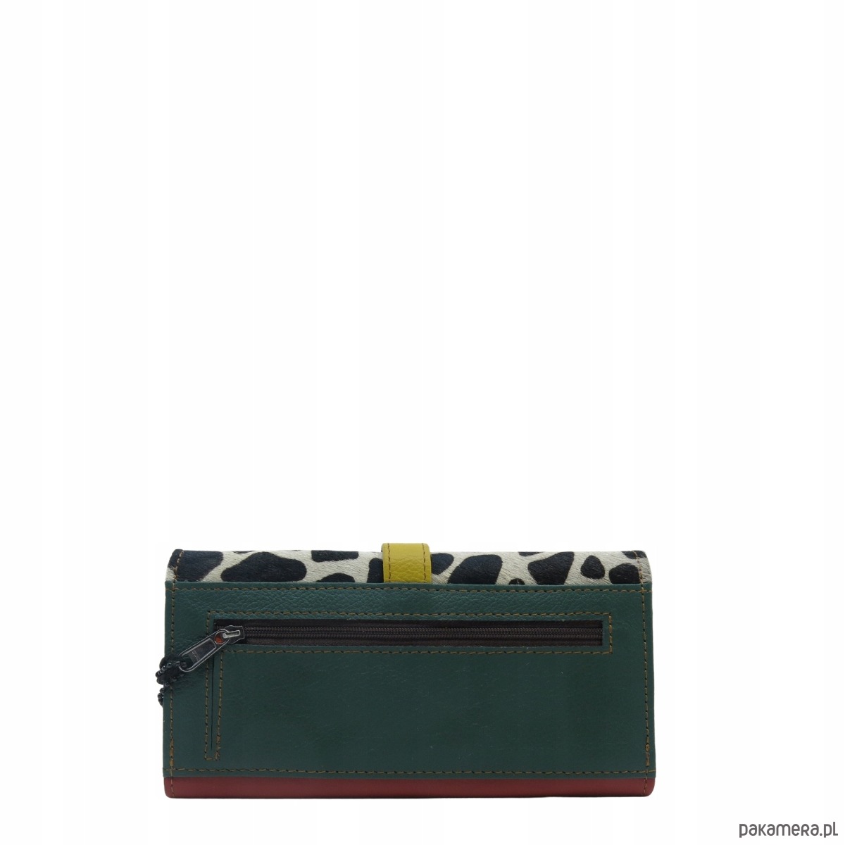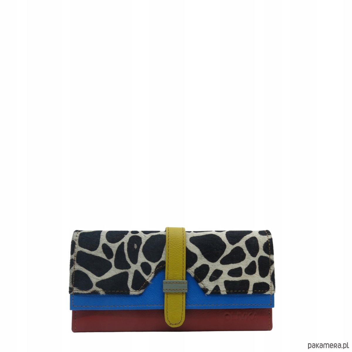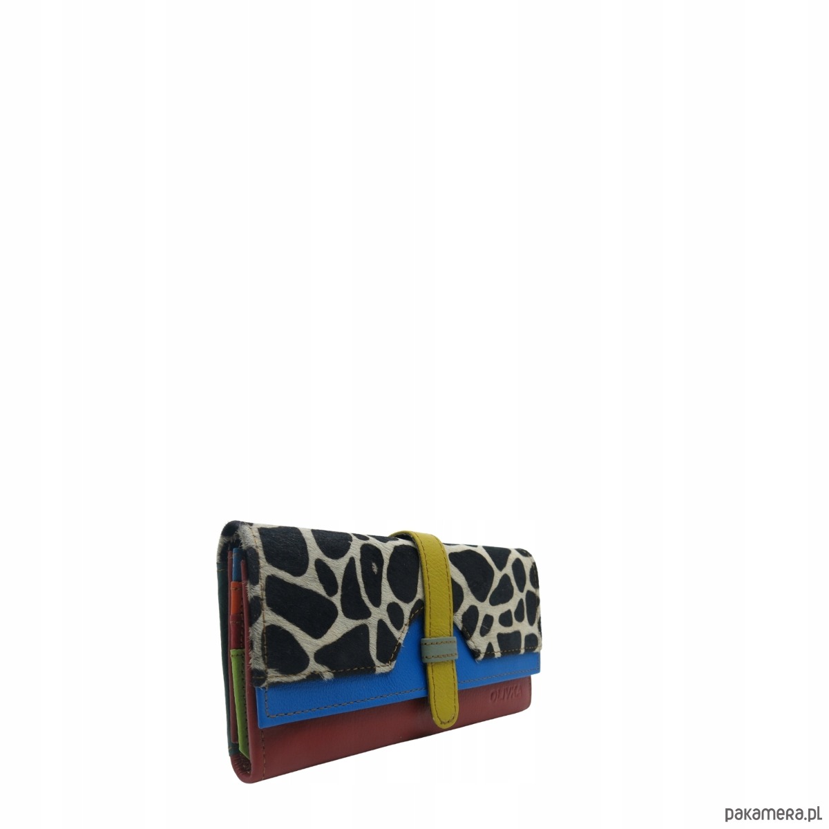 Portfel damski skórzany ze skrawków kolorowy przegródki na karty OLIVKA