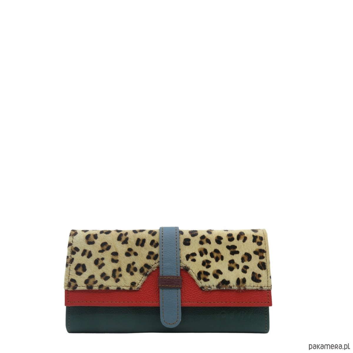 Portfel damski skórzany ze skrawków kolorowy przegródki na karty OLIVKA