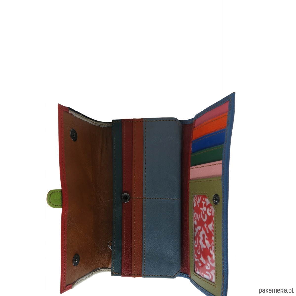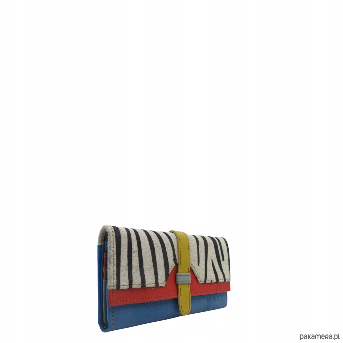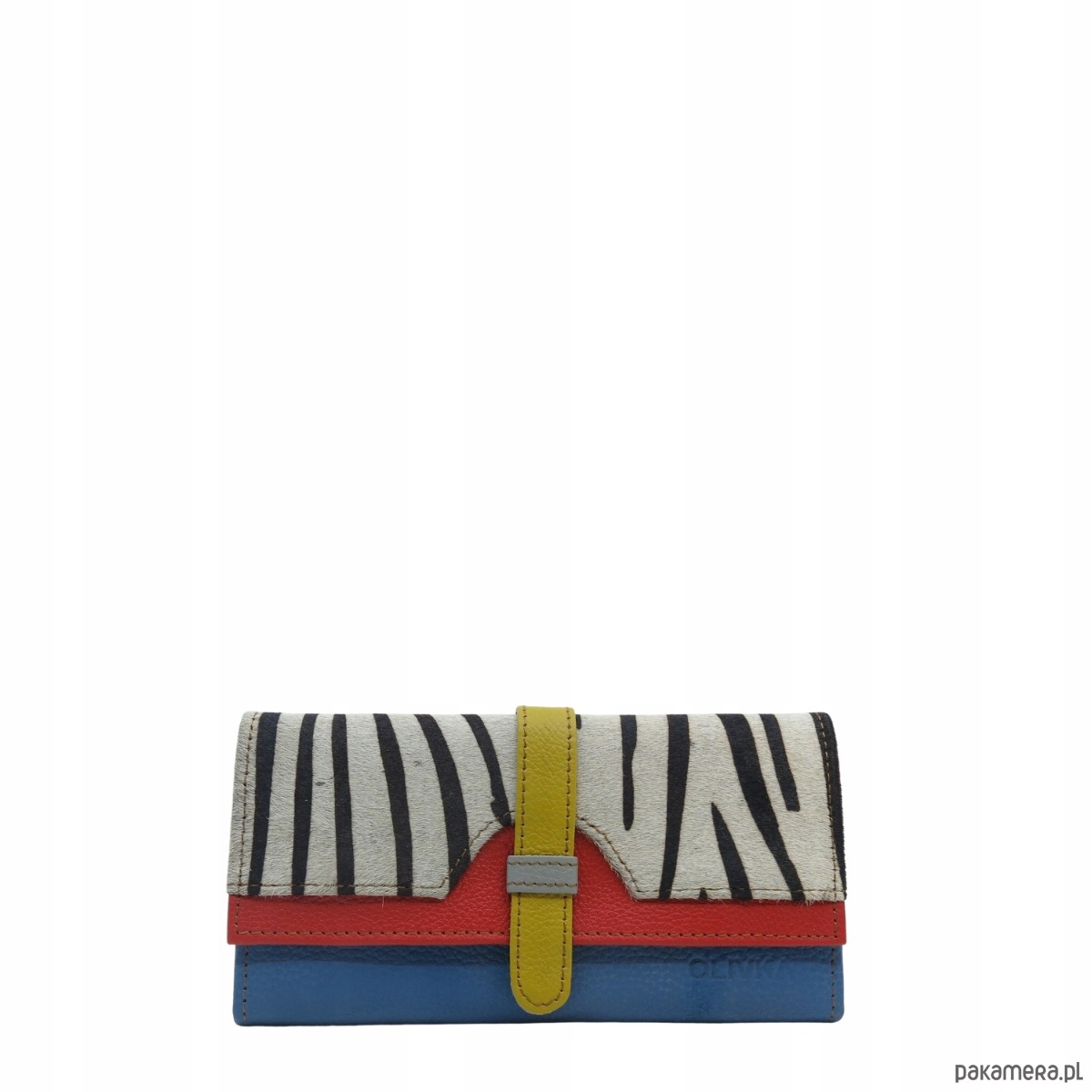 Portfel damski skórzany ze skrawków kolorowy przegródki na karty OLIVKA