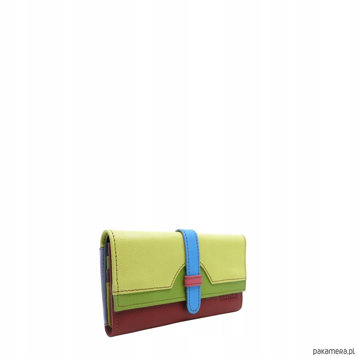 Portfel damski skórzany ze skrawków kolorowy przegródki na karty OLIVKA