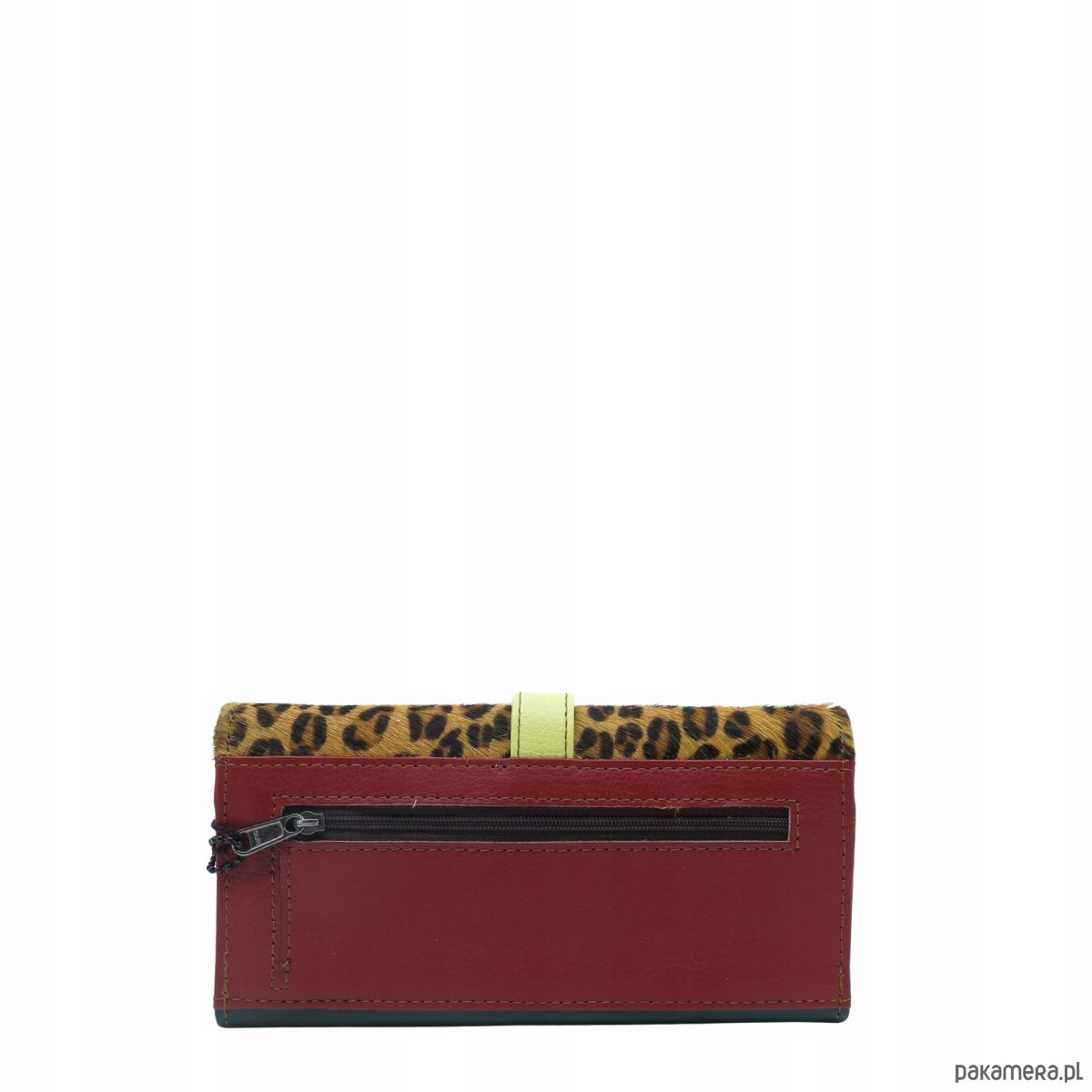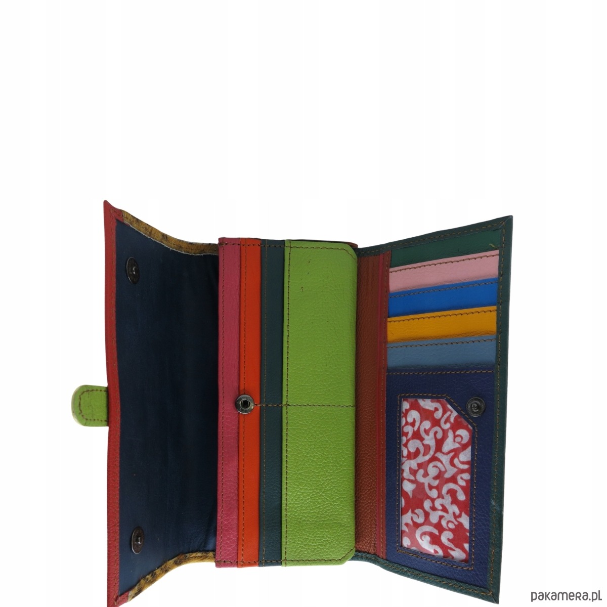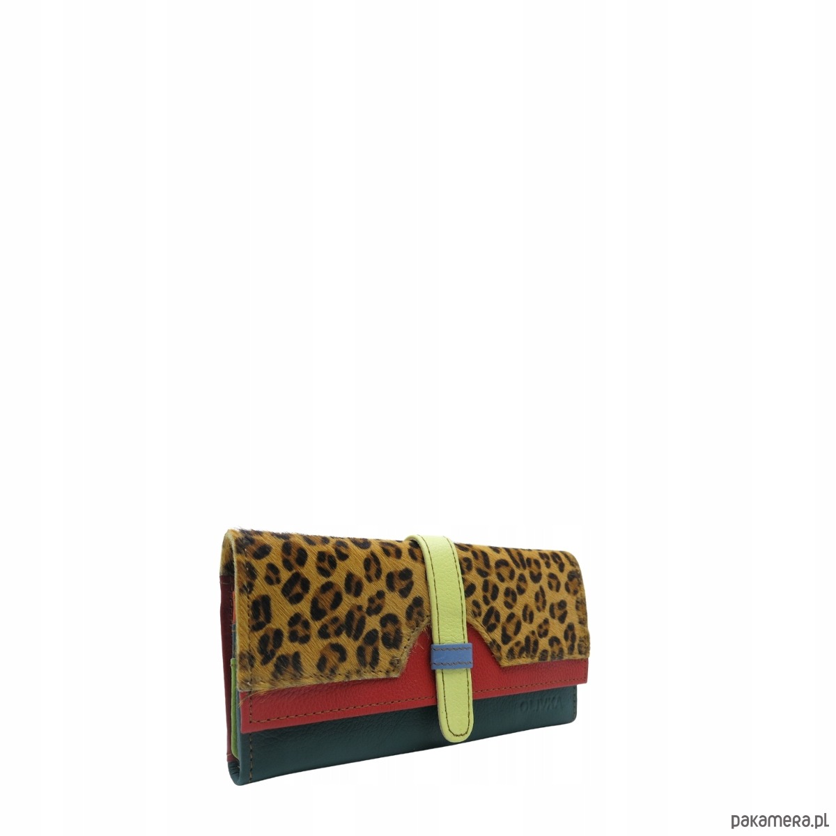 Portfel damski skórzany ze skrawków kolorowy przegródki na karty OLIVKA