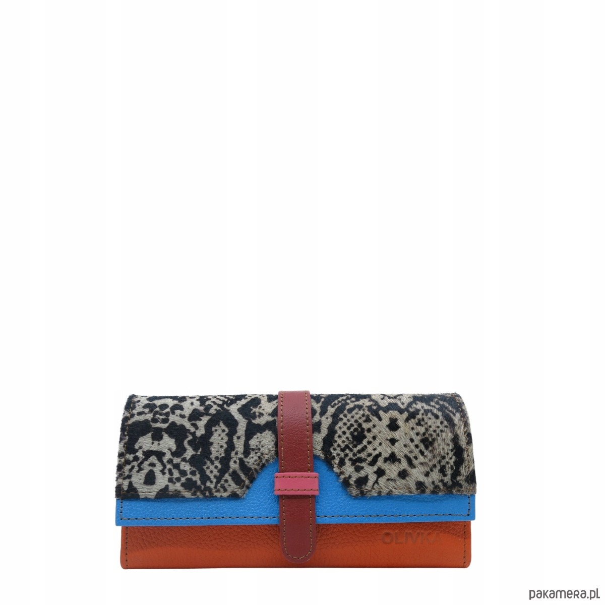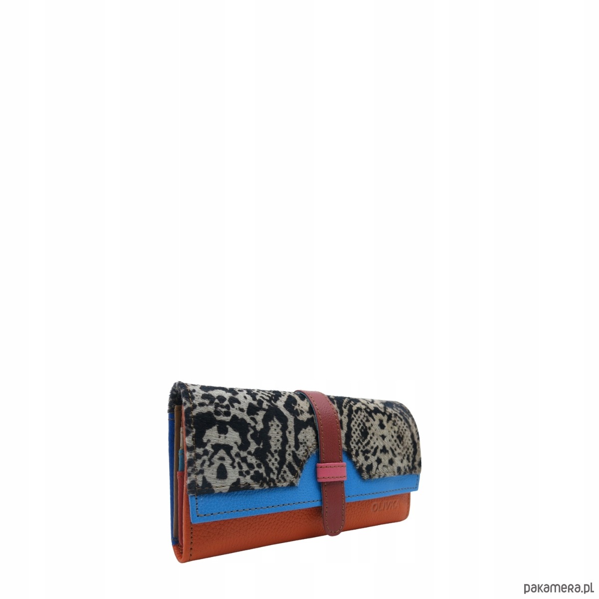 Portfel damski skórzany ze skrawków kolorowy przegródki na karty OLIVKA