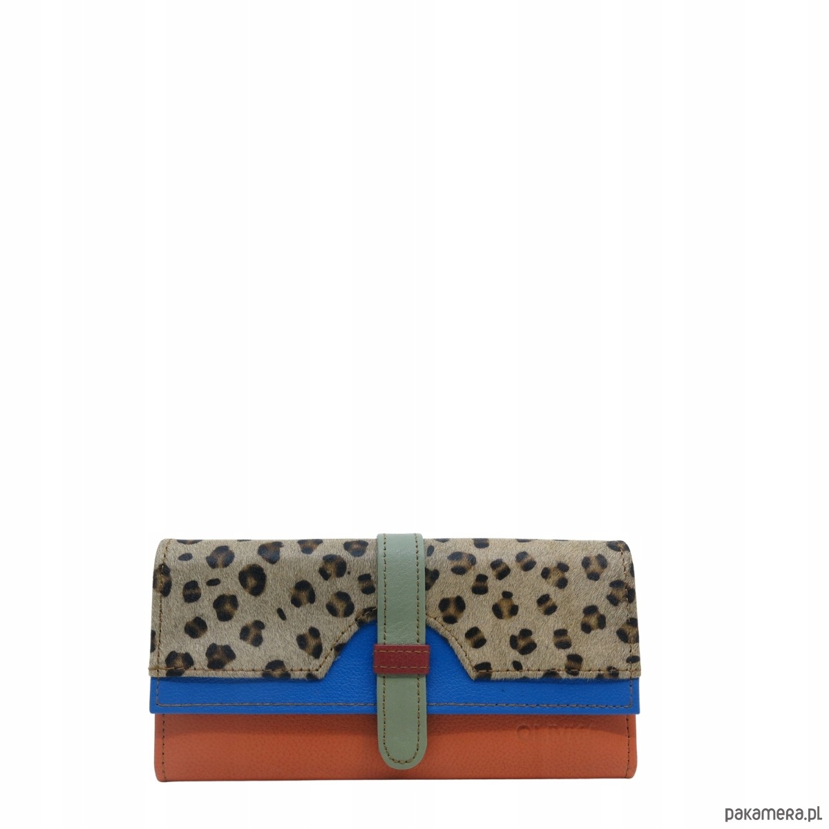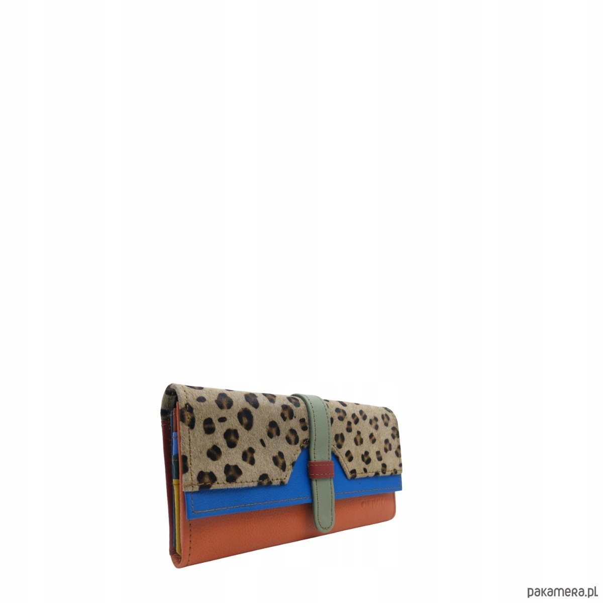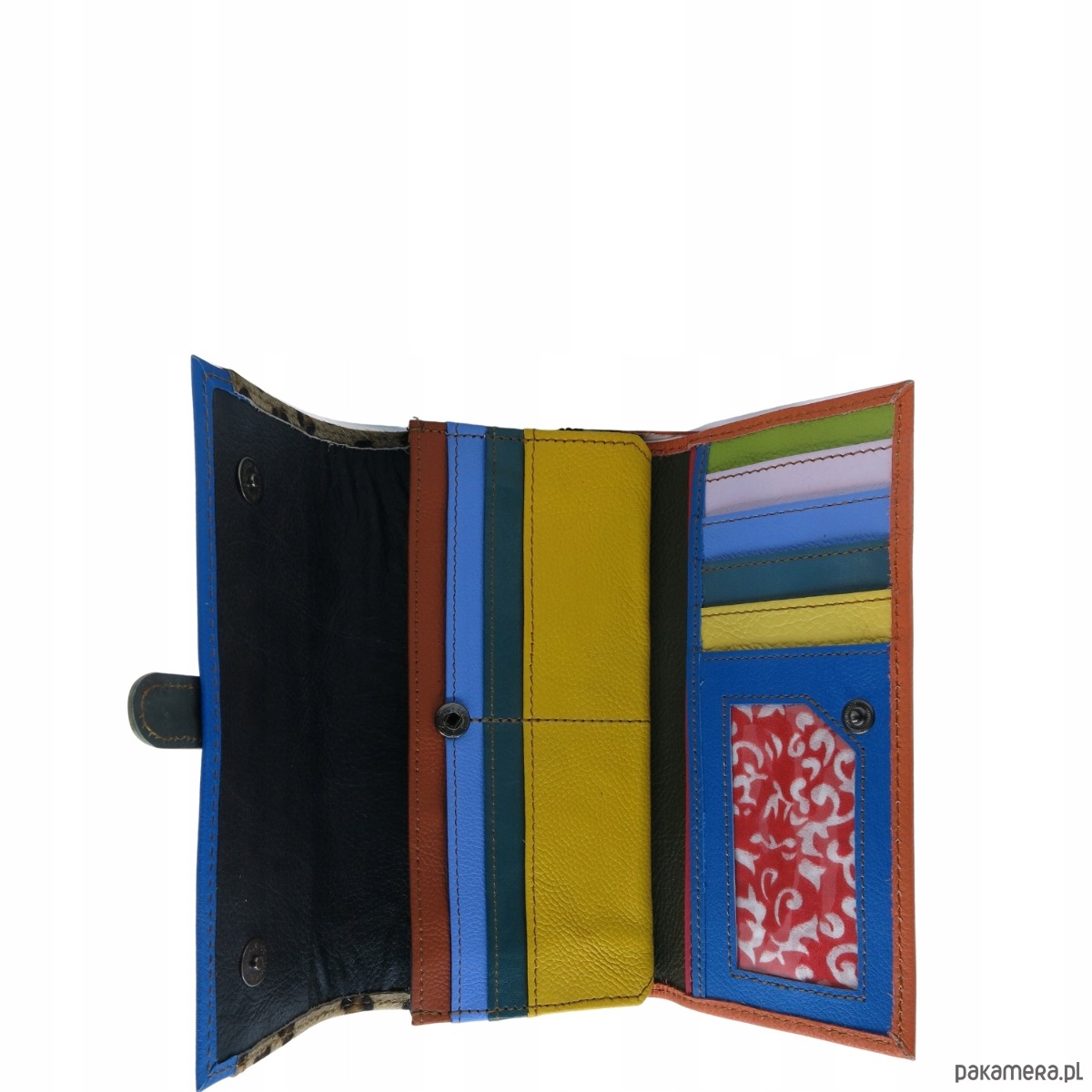 Portfel damski skórzany ze skrawków kolorowy przegródki na karty OLIVKA