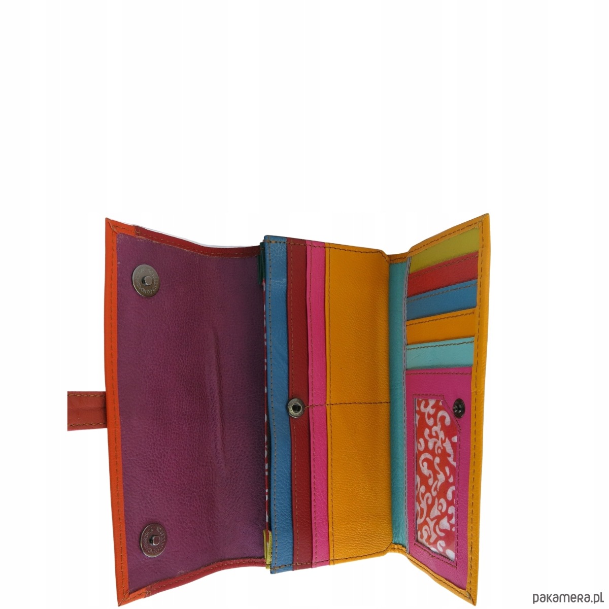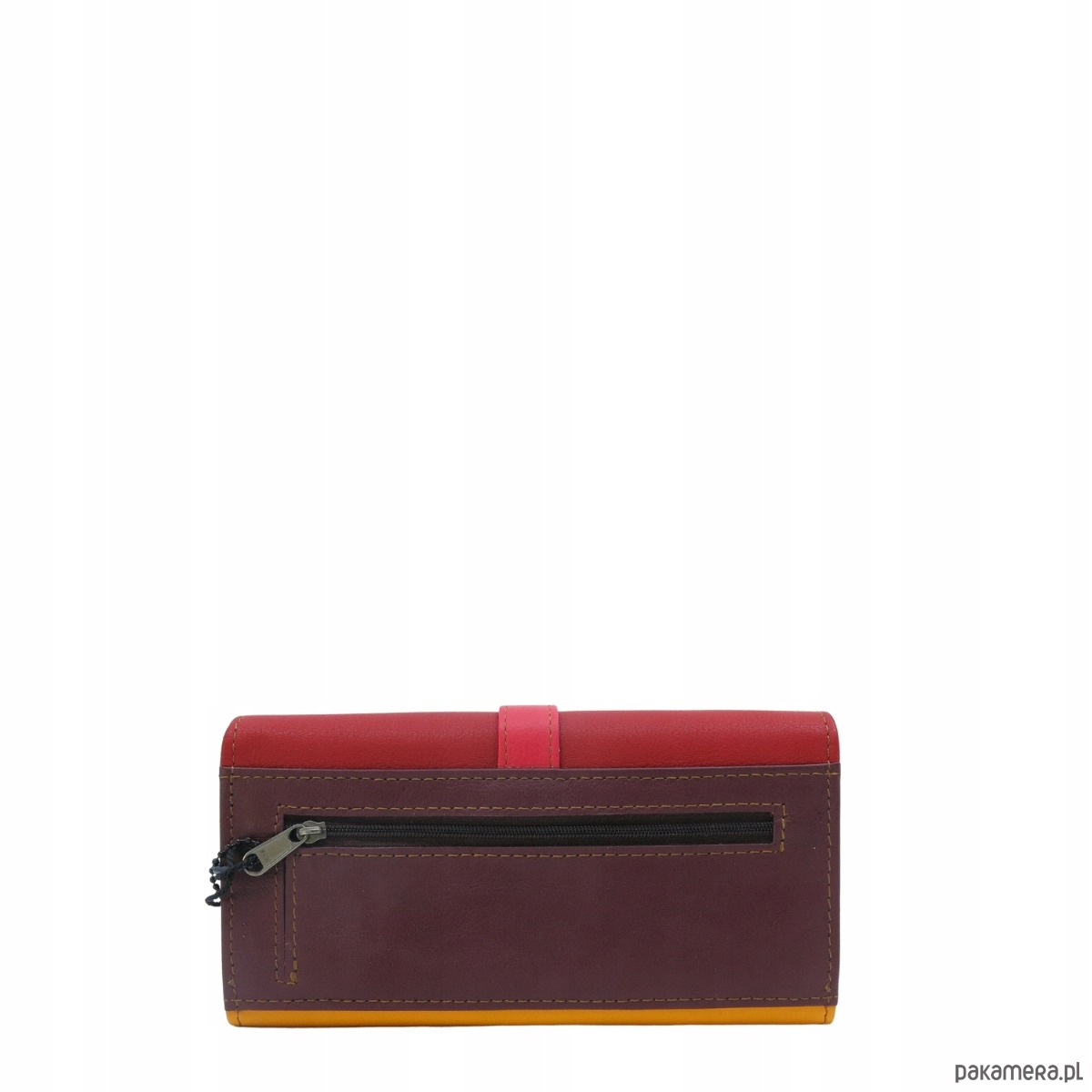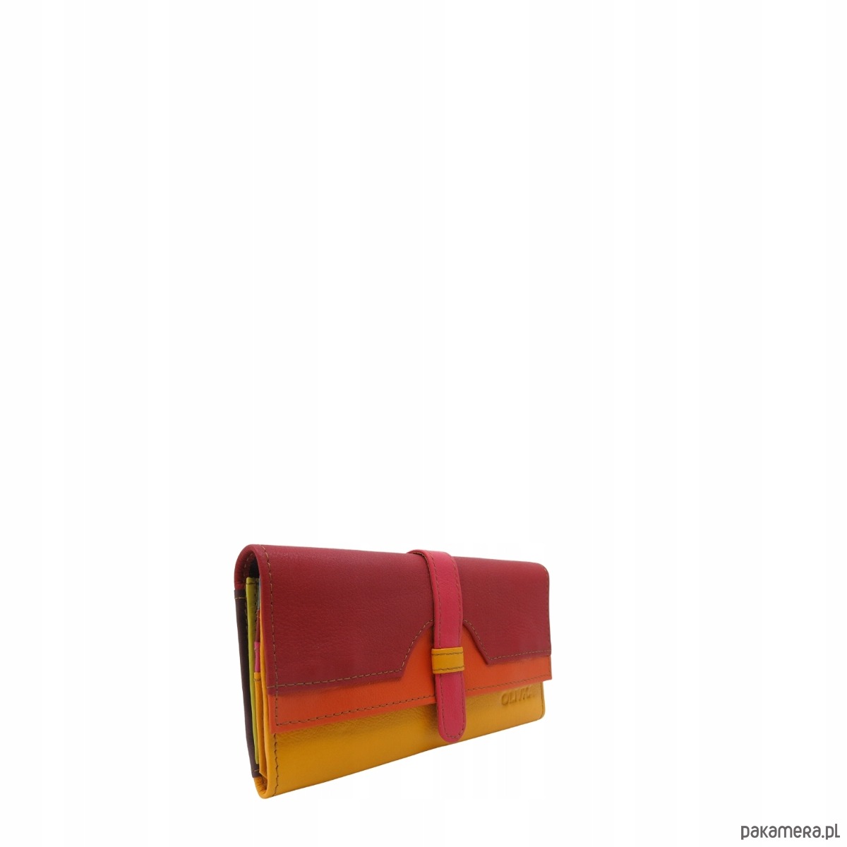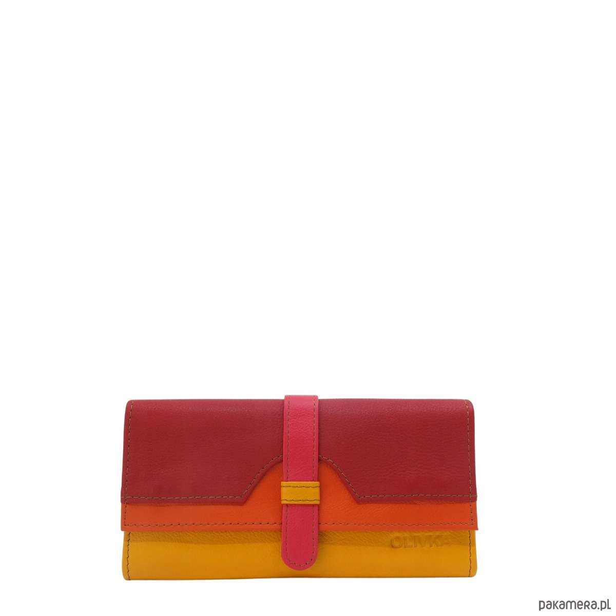 Portfel damski skórzany ze skrawków kolorowy przegródki na karty OLIVKA