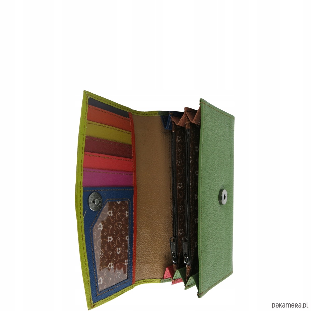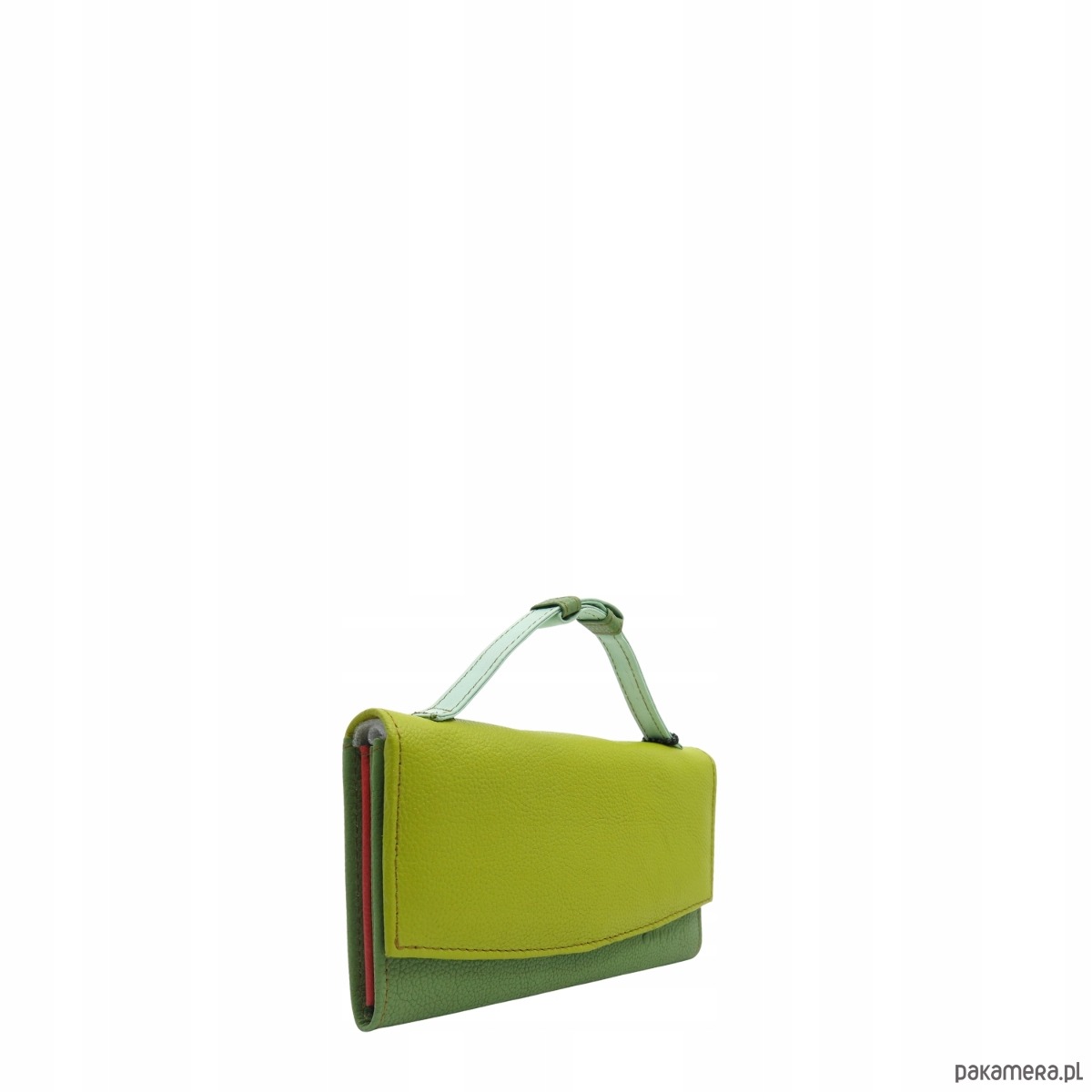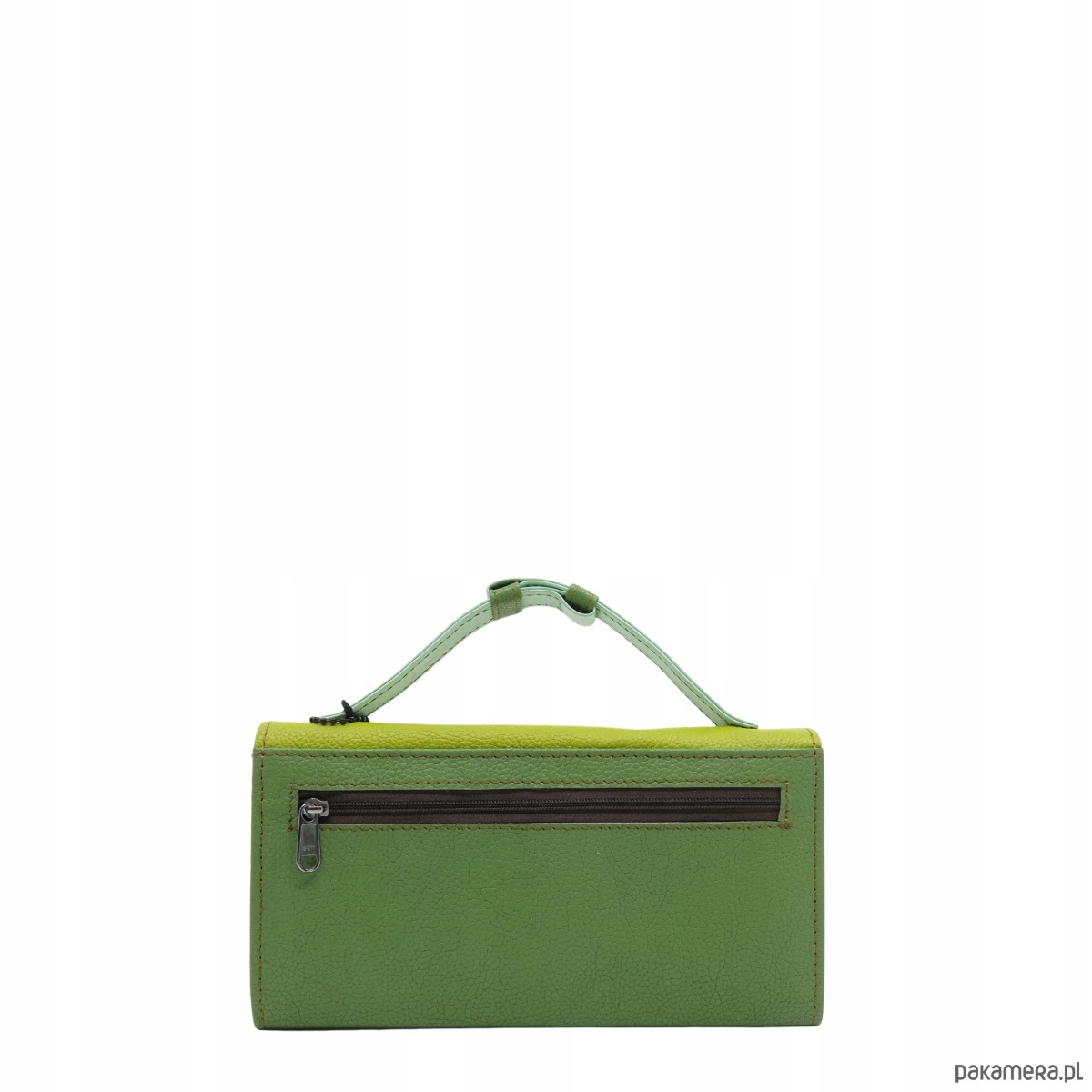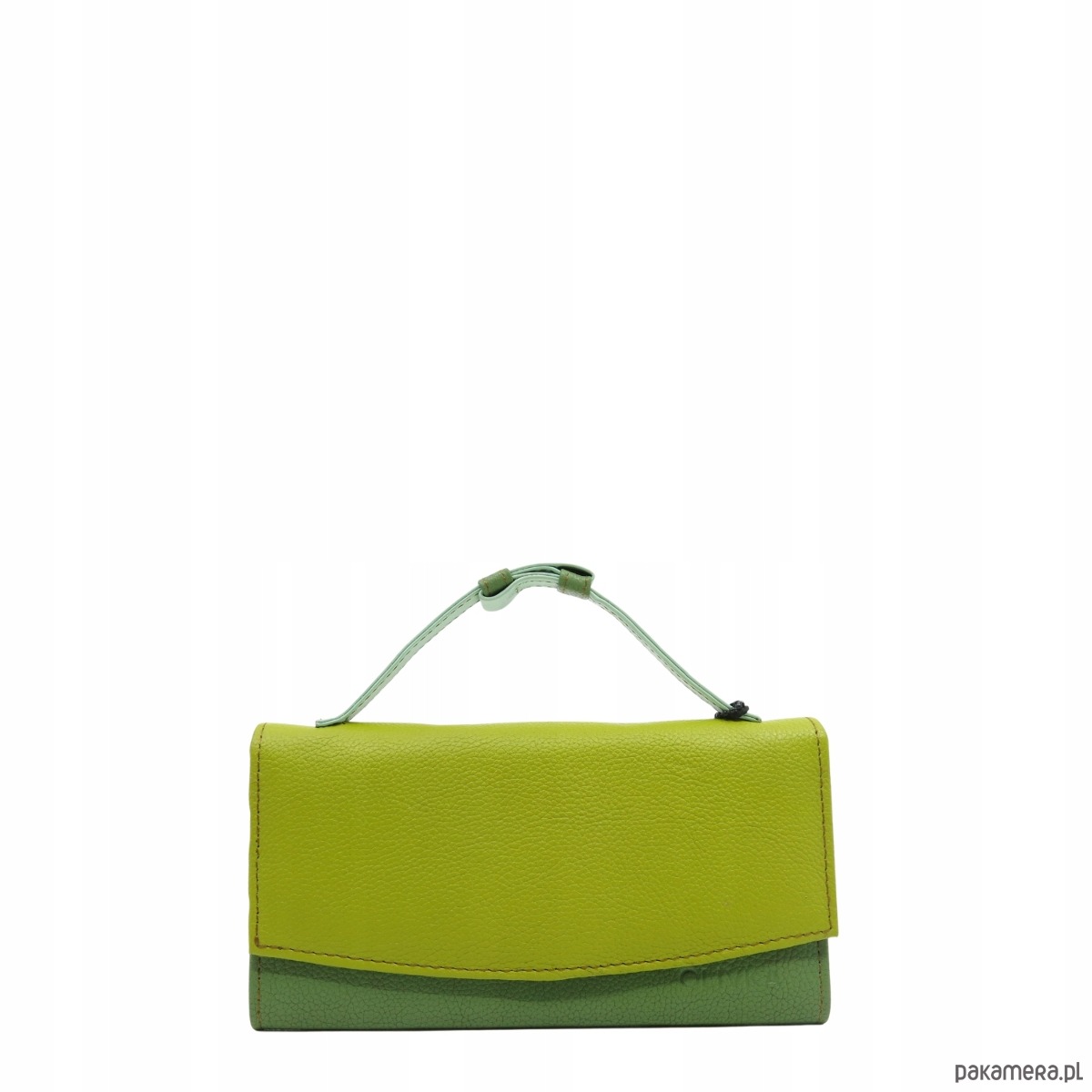 Portfel damski skórzany ze skrawków rączka dużo przegródek eko OLIVKA