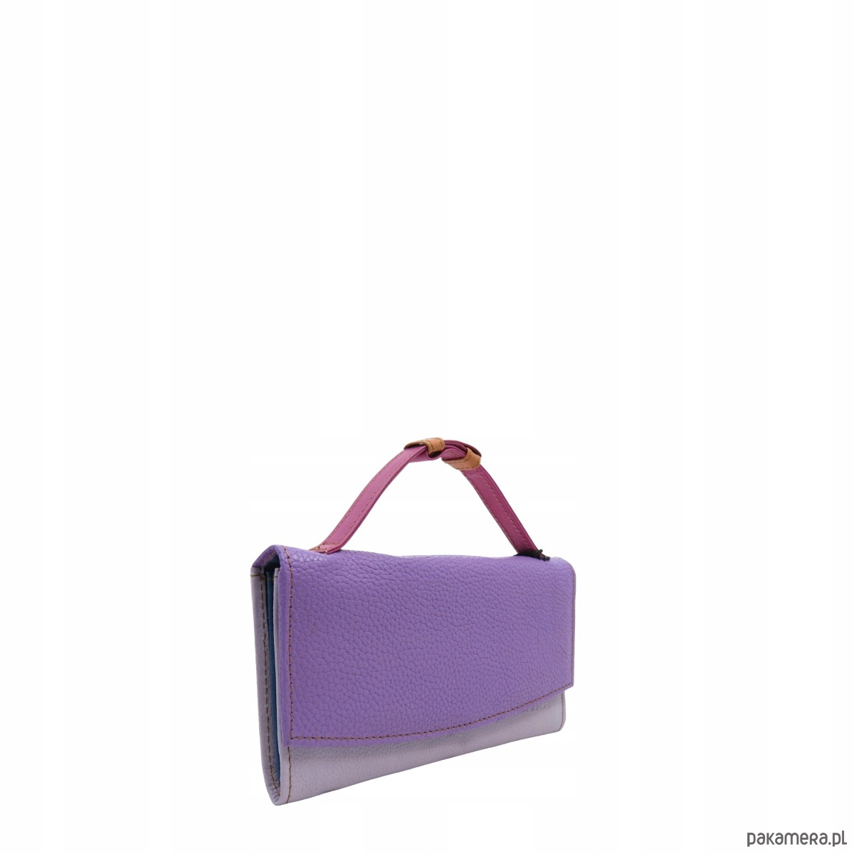 Portfel damski skórzany ze skrawków rączka dużo przegródek eko OLIVKA