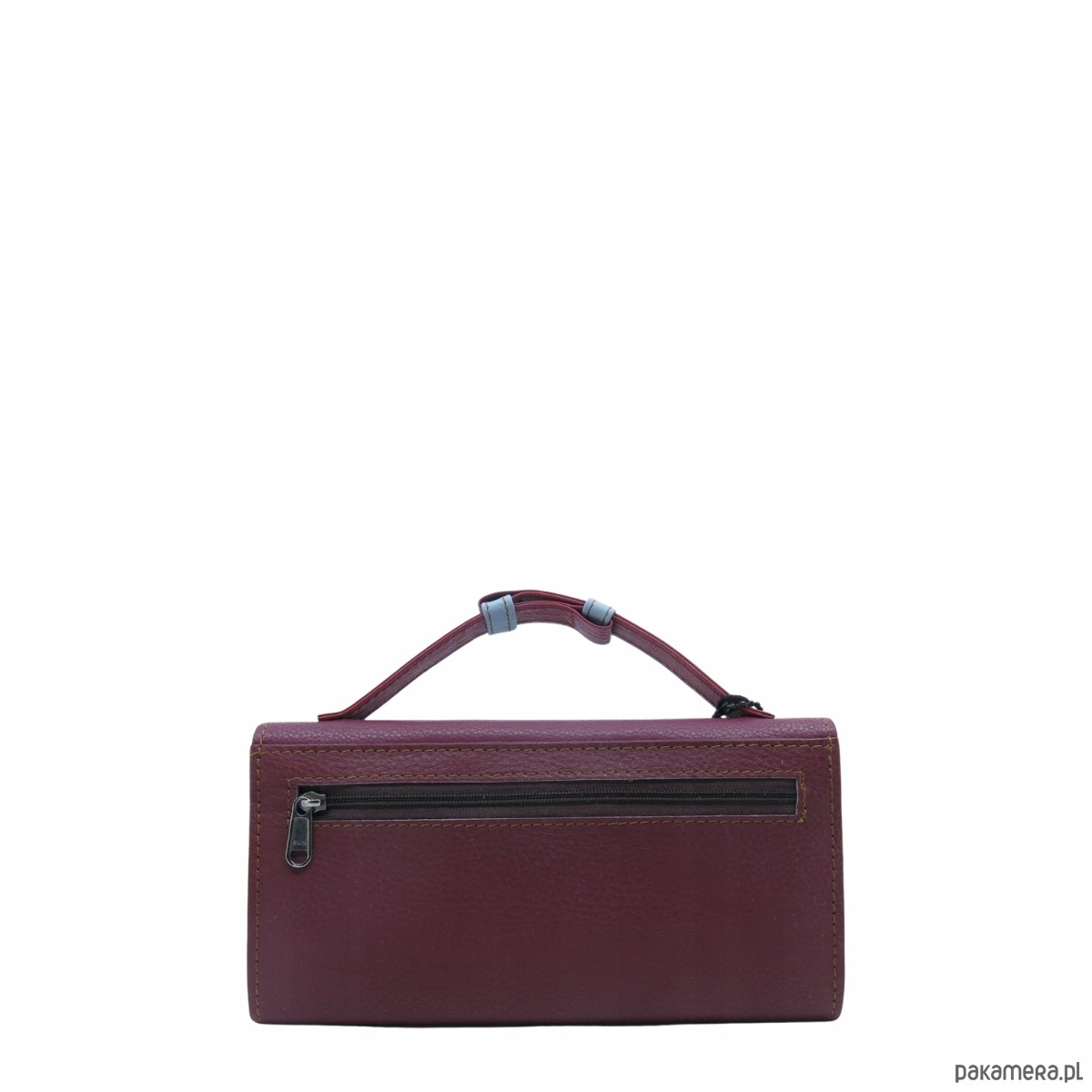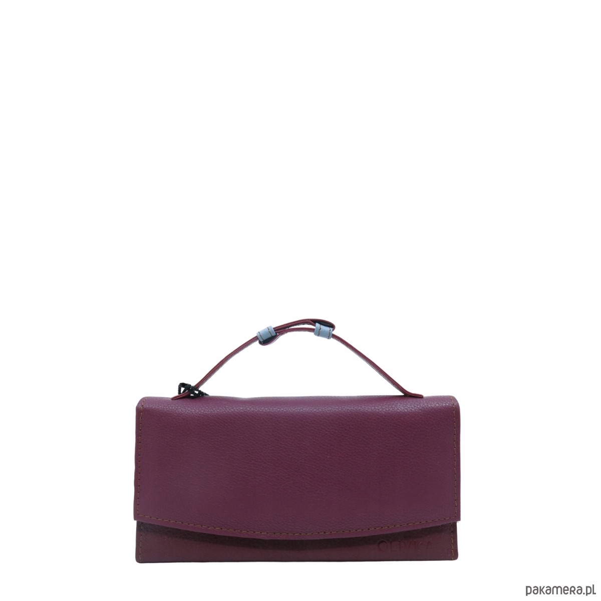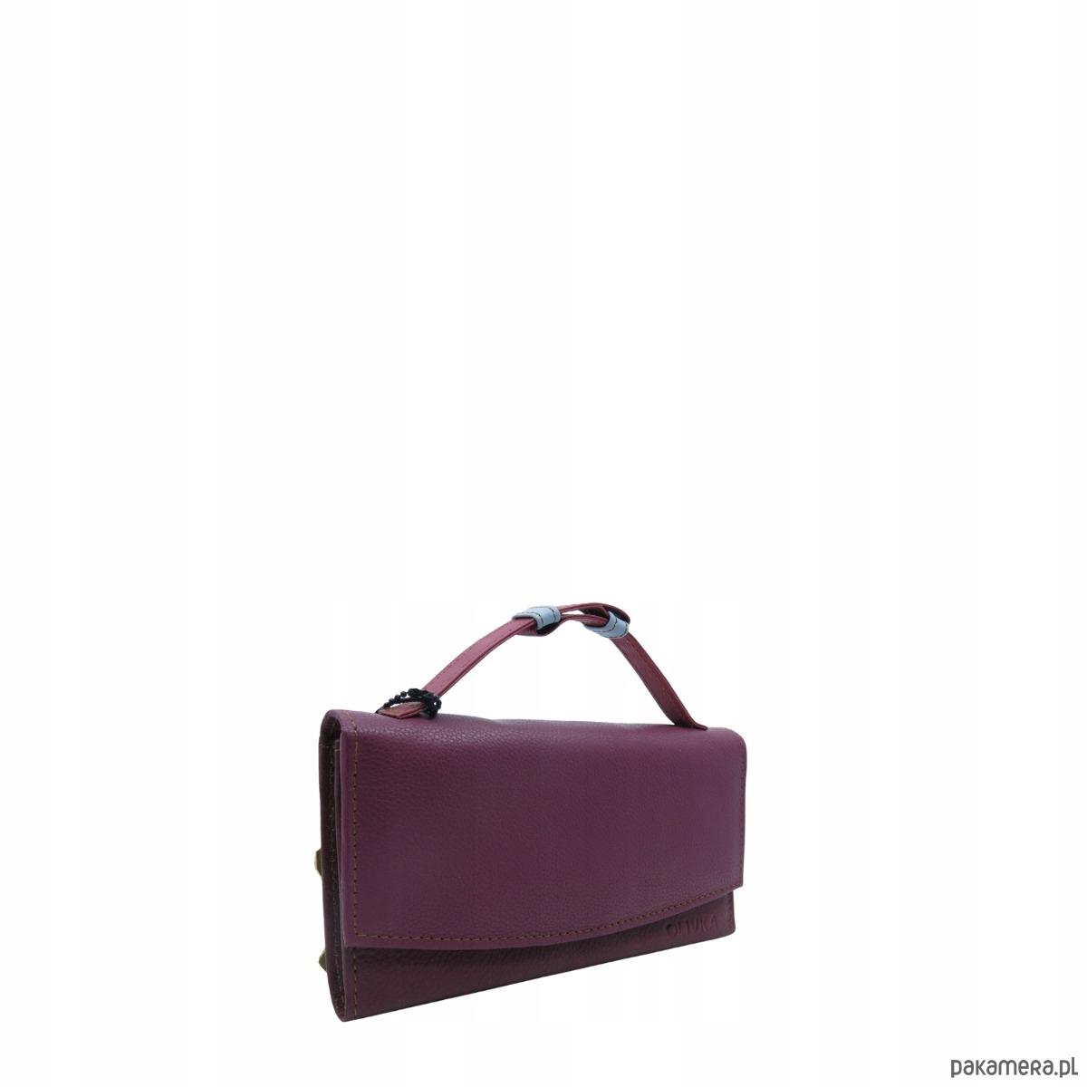 Portfel damski skórzany ze skrawków rączka dużo przegródek eko OLIVKA