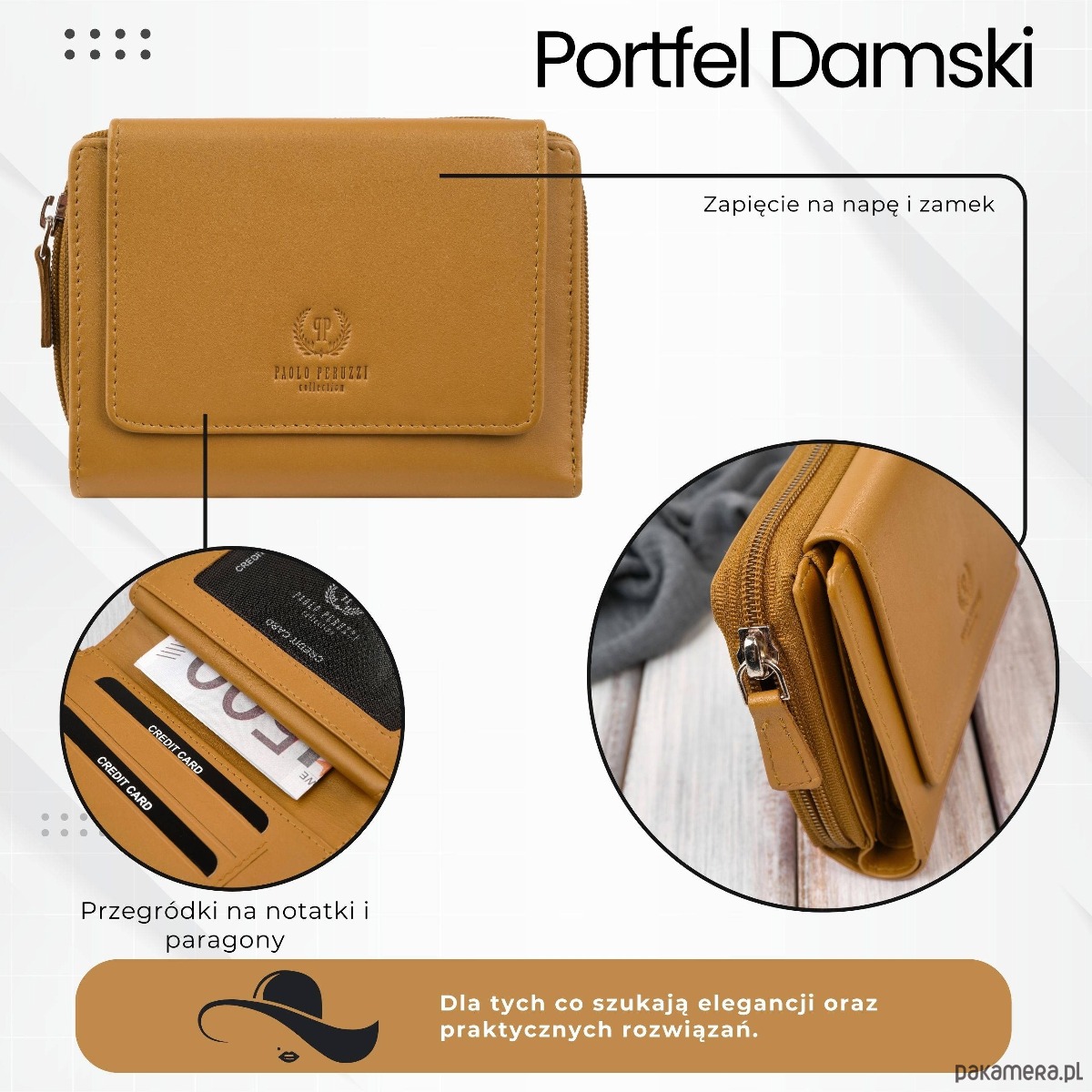 3. Bezpieczna kieszeń na bilonZapinana przegroda chroni monety przed wypadaniem, zapewniając komfort użytkowania.