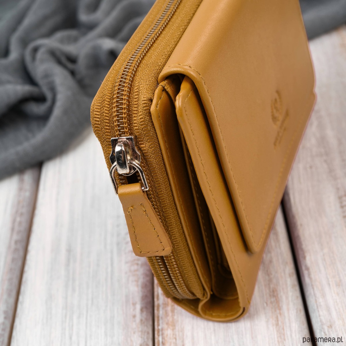 Portfel damski skórzany żółty duży w orientacji poziomej z RFID