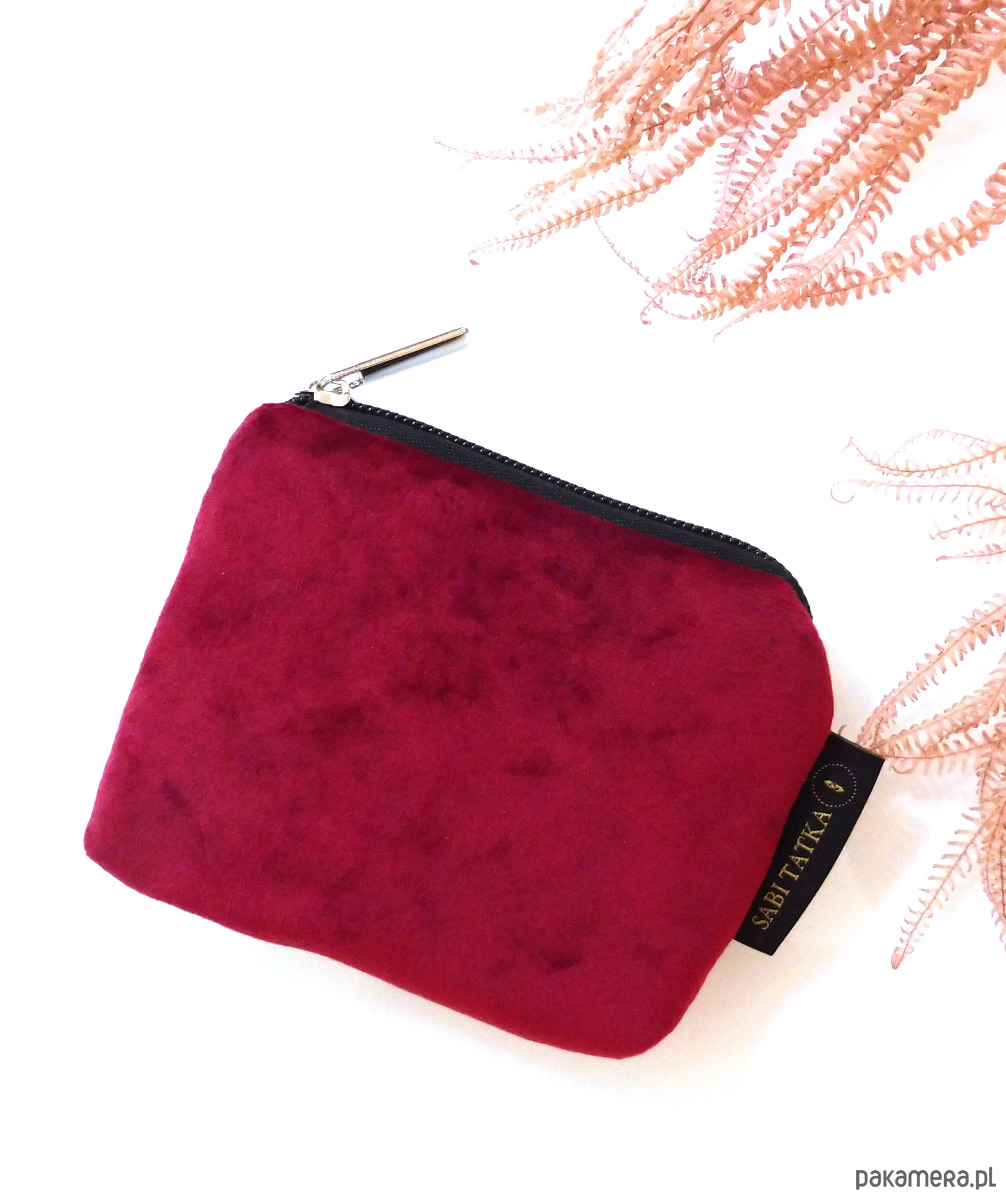 Portfel etui na karty z weluru Wiśnowy