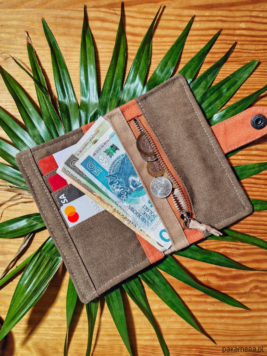 Portfel FUKU z bawełny canvas i bawełny drelich brązowy