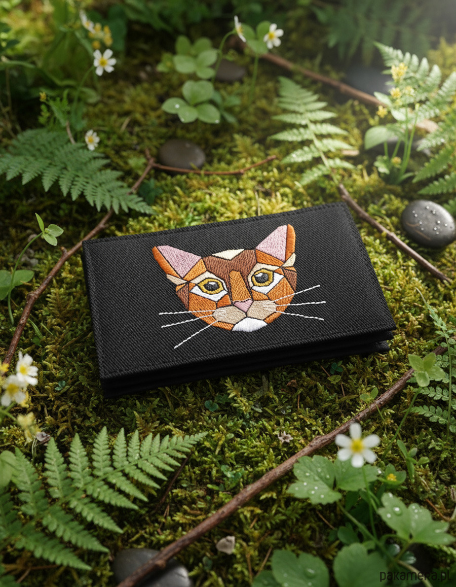 Haftowany portfel wykonany z impregnowanego papieru i bawełny. Jest 100% wegański.