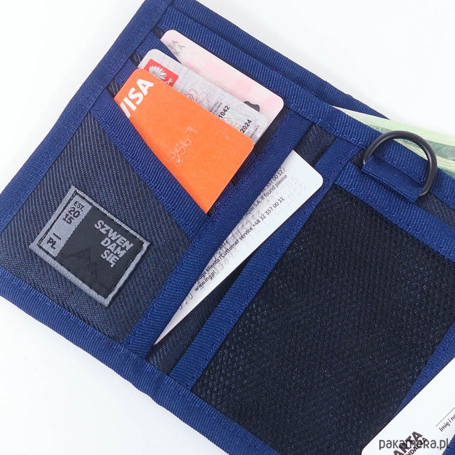 Portfel materiałowy posiada:- dużą przegrodę na banknoty- kieszonkę na bilon zamykaną na suwak YKK- trzy przegrody na karty- przegrodę z siatki - trzy ukryte przegrody- uchwyt D-ring umożliwiający zamocowanie łańcucha lub smyczy- portfel jest zapinany na rzepDo uszycia naszych materiałowych portfeli użyto grubej i impregnowanej tkaniny poliestrowej, która nie wchłania wilgoci. Charakteryzuje ją bardzo duża wytrzymałość oraz odporność na zabrudzenia i plamy. Materiał jest stosunkowo miękki, a do tego nie gniecie się i nie rozciąga. Co więcej, poliester jest również odporny na przecieranie oraz działanie promieni słonecznych. Mocna i trwała tkanina sprawia, że zachowa on swój wygląd na lata.Portfele turystyczne wysyłamy w estetycznych eko-pudełkach z podróżniczymi motywami, które dodatkowo wypełniamy ozdobną wełną drzewną. Tak zapakowany produkt nadaje się do natychmiastowego wręczenia. Praktyczne portfele stanowią doskonały pomysł na prezent dla podróżników oraz pozostałych osób, które cenią sobie niebanalne i funkcjonalne rozwiązania. Portfele Szwendam się wyprodukowano w Polsce, dlatego charakteryzuje je bardzo wysoka jakość.