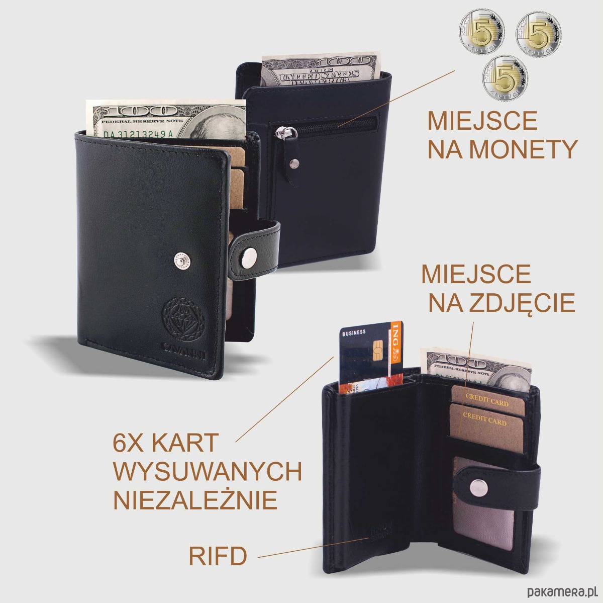 Portfel męski z aluminiowym mechanizmem wysuwania 6 cards bez potrzeby otwierania portfela