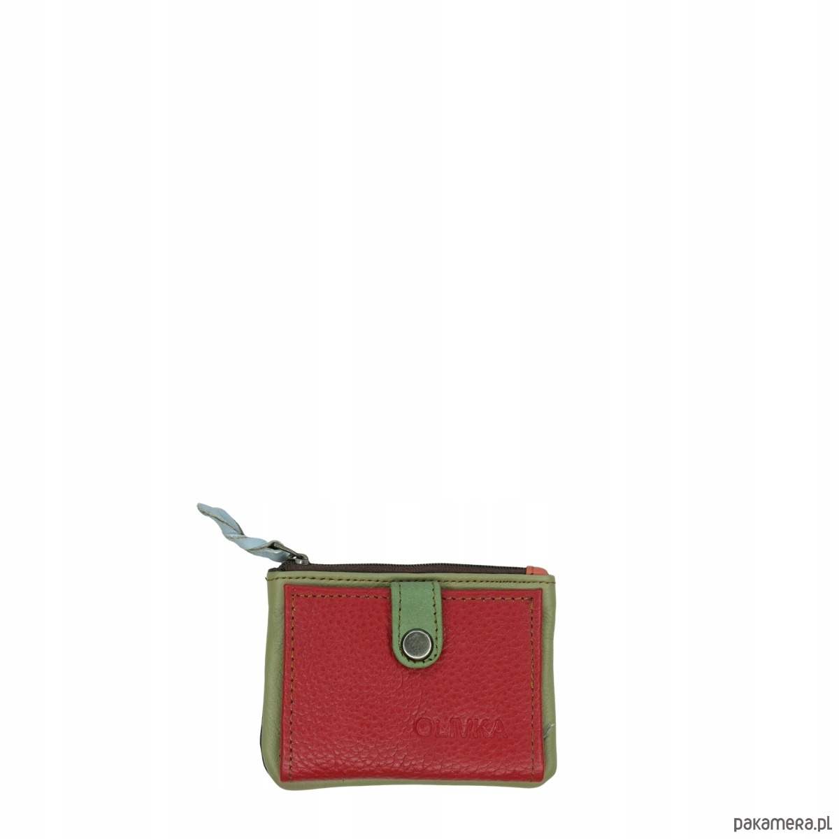Portfel portfelik mały skórzany miejsce na bilon karty eko OLIVKA