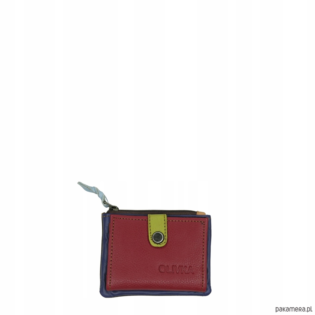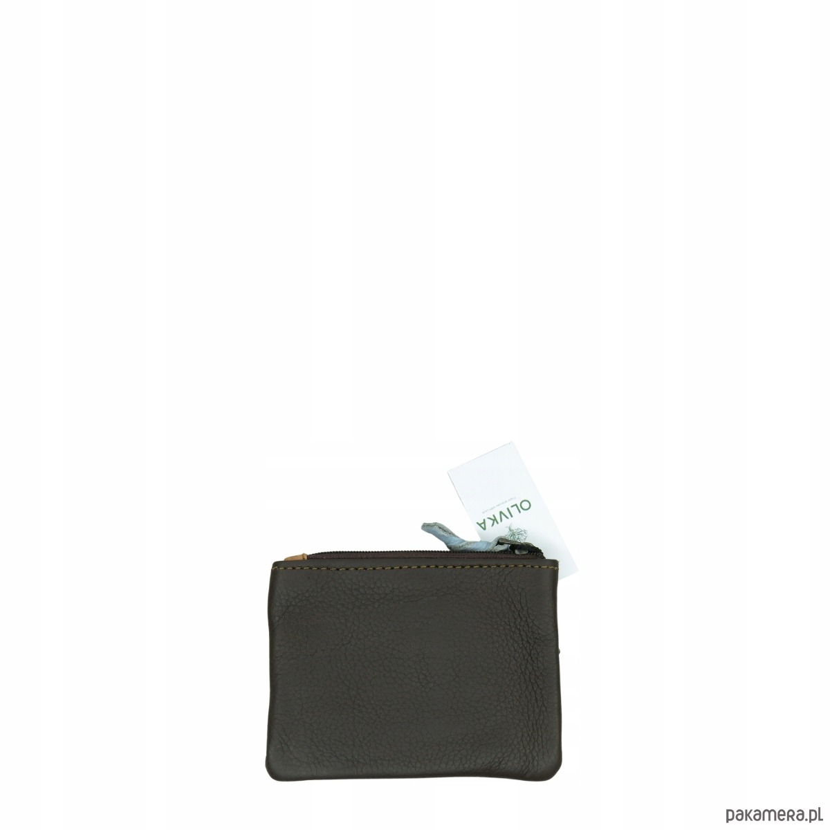Portfel portfelik mały skórzany miejsce na bilon karty eko OLIVKA