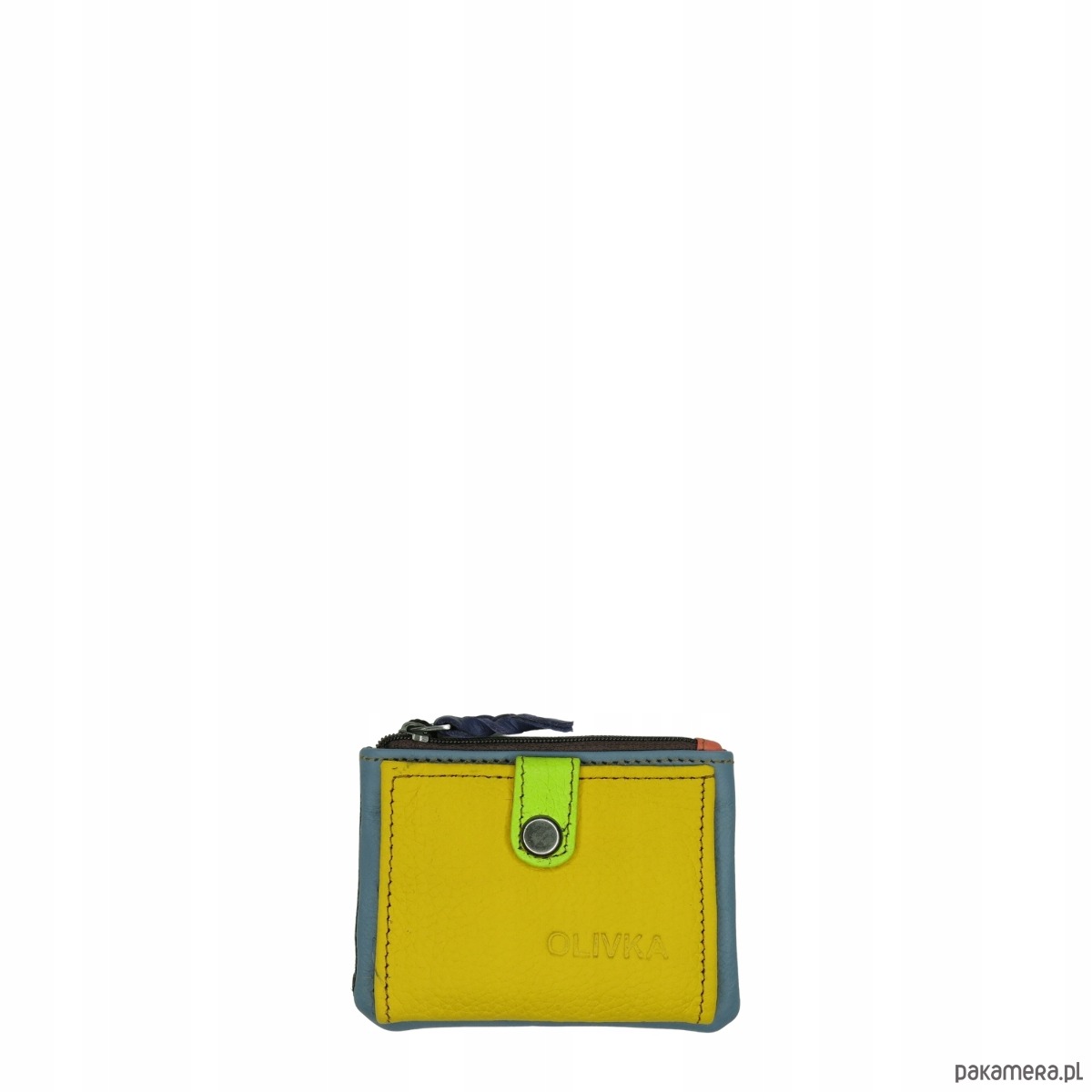 Portfel portfelik mały skórzany miejsce na bilon karty eko OLIVKA