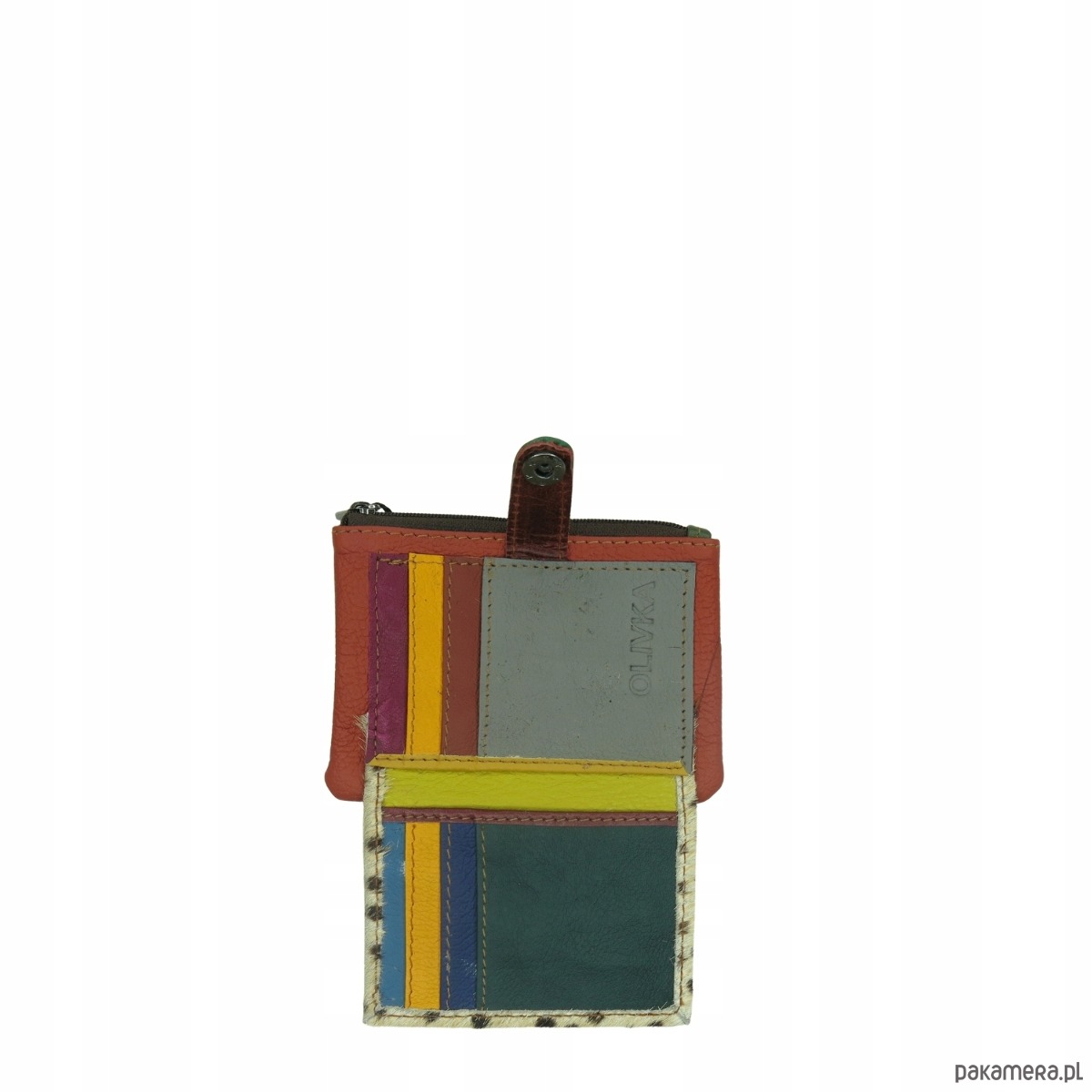 Portfel portfelik mały skórzany miejsce na bilon karty eko OLIVKA