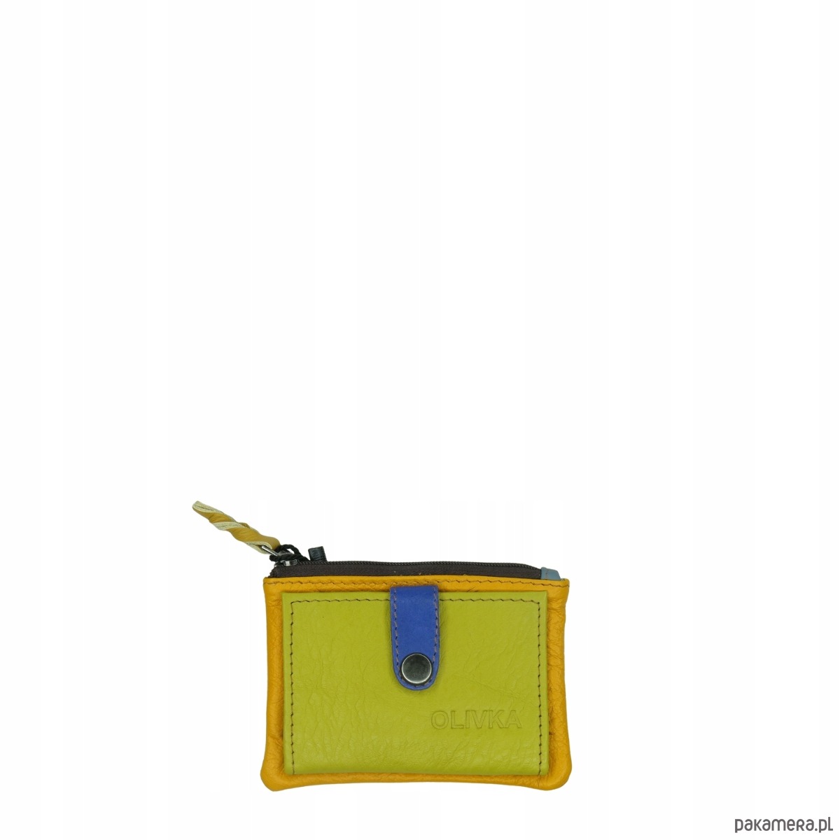 Portfel portfelik mały skórzany miejsce na bilon karty eko OLIVKA