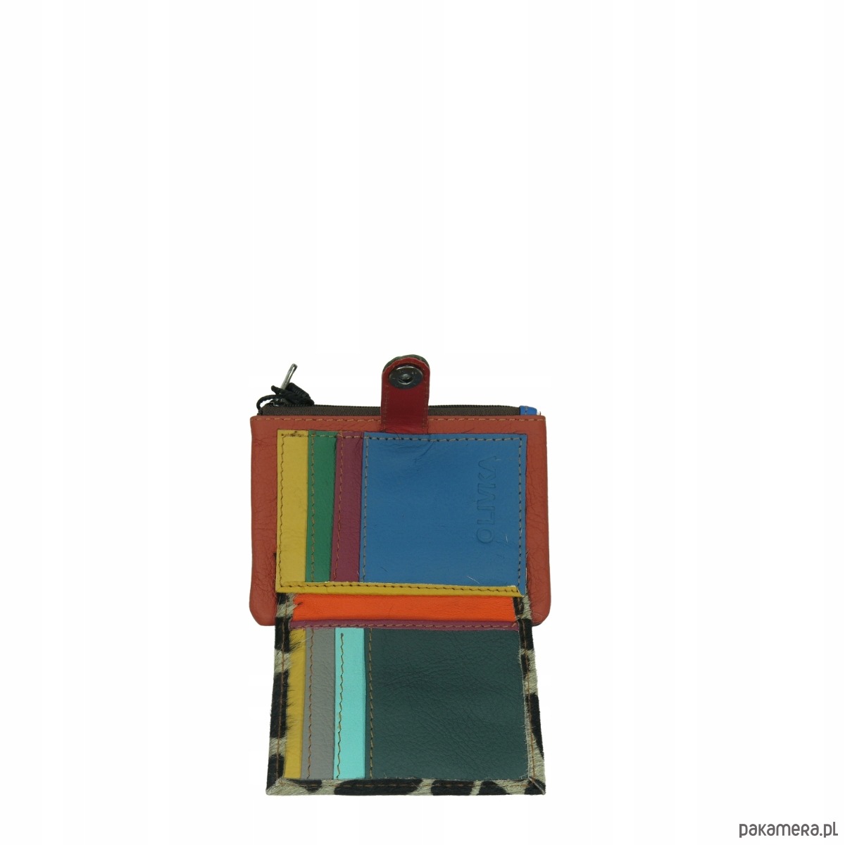 2. przednia część zapinana na napę z miejscem na karty, wizytówki, dokumenty