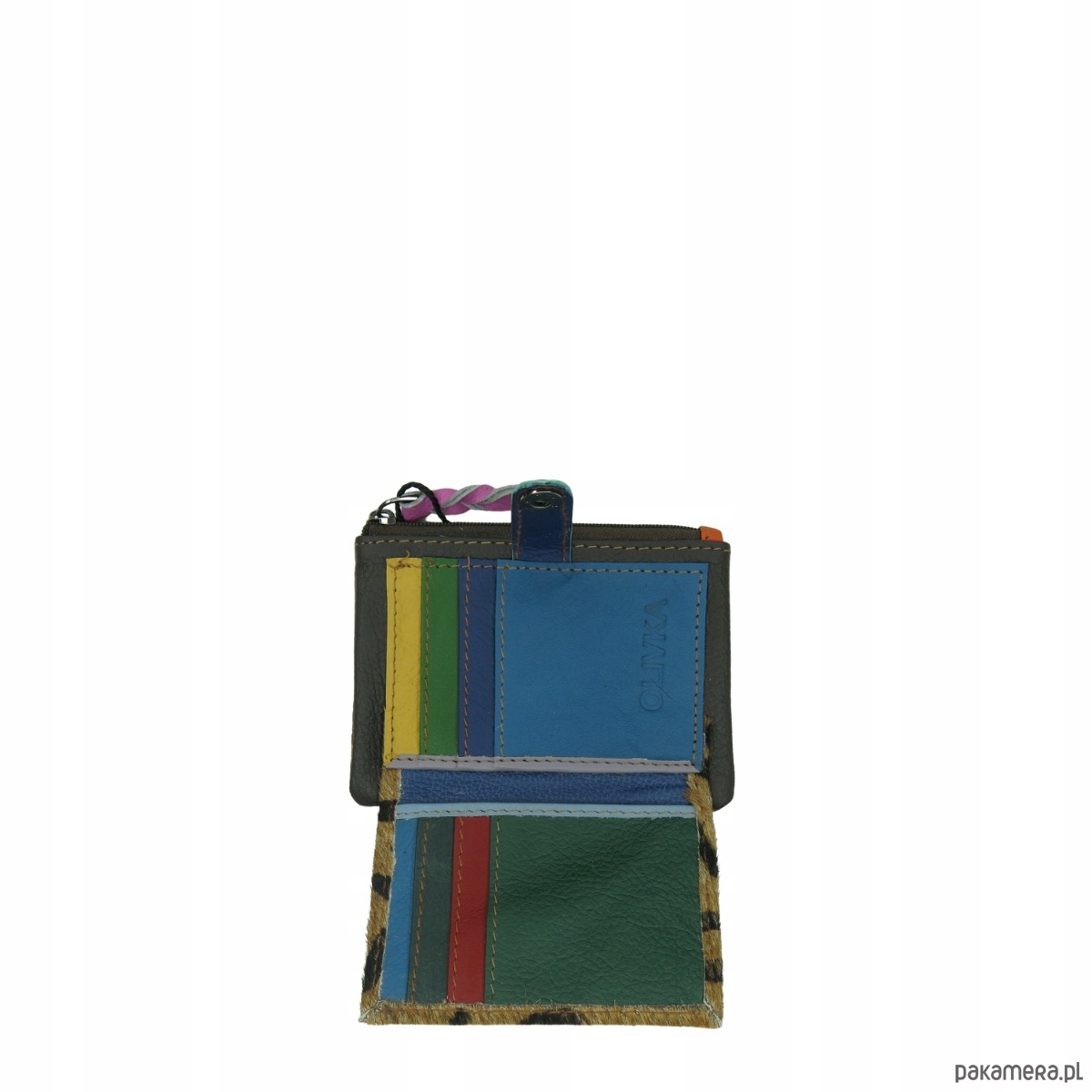 Portfel portfelik mały skórzany miejsce na bilon karty eko OLIVKA