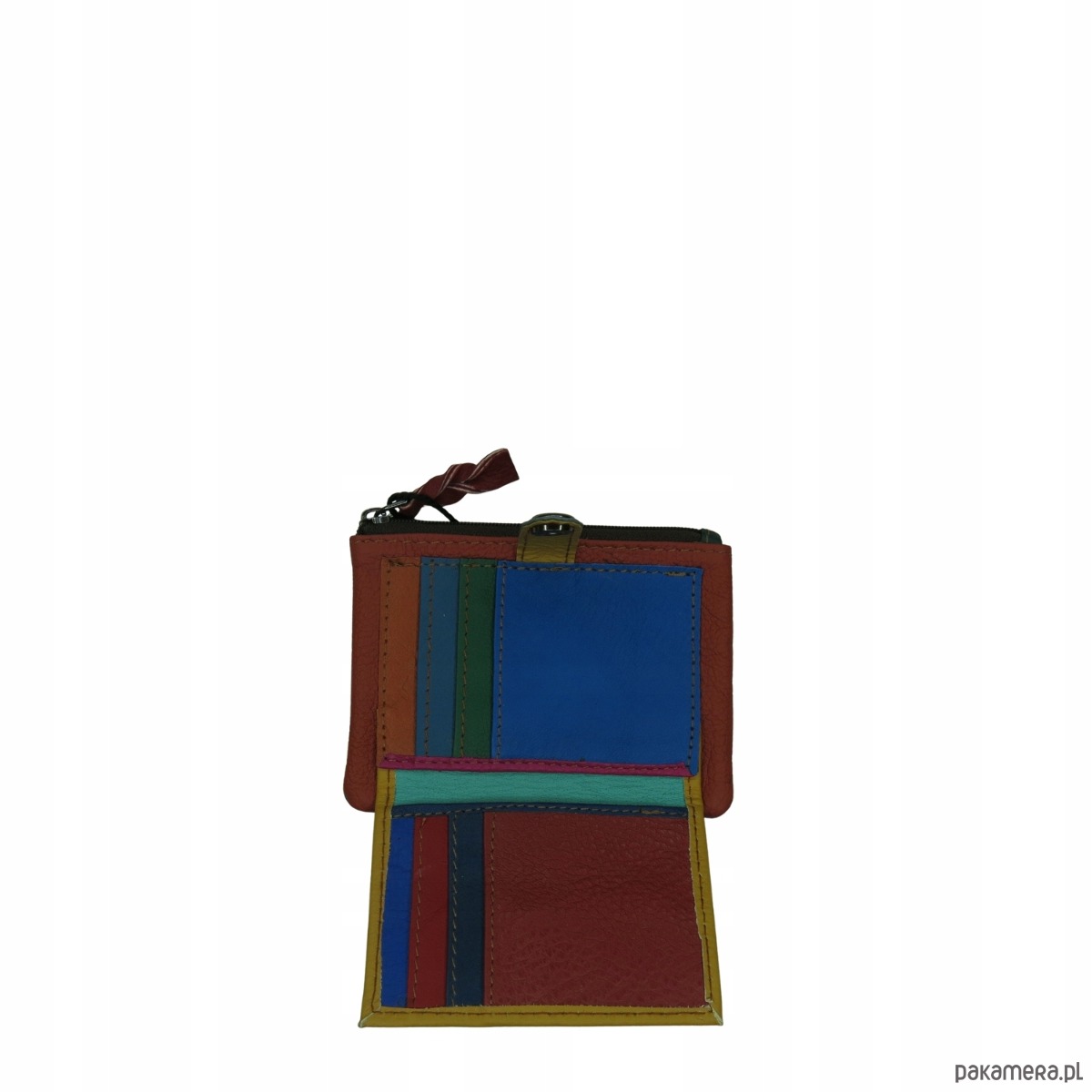 Niewielki portfel wykonany ze skrawków skóry naturalnej, który dzięki swoim kompaktowym rozmiarom idealnie mieści się w każdej torebce czy kieszeni.
